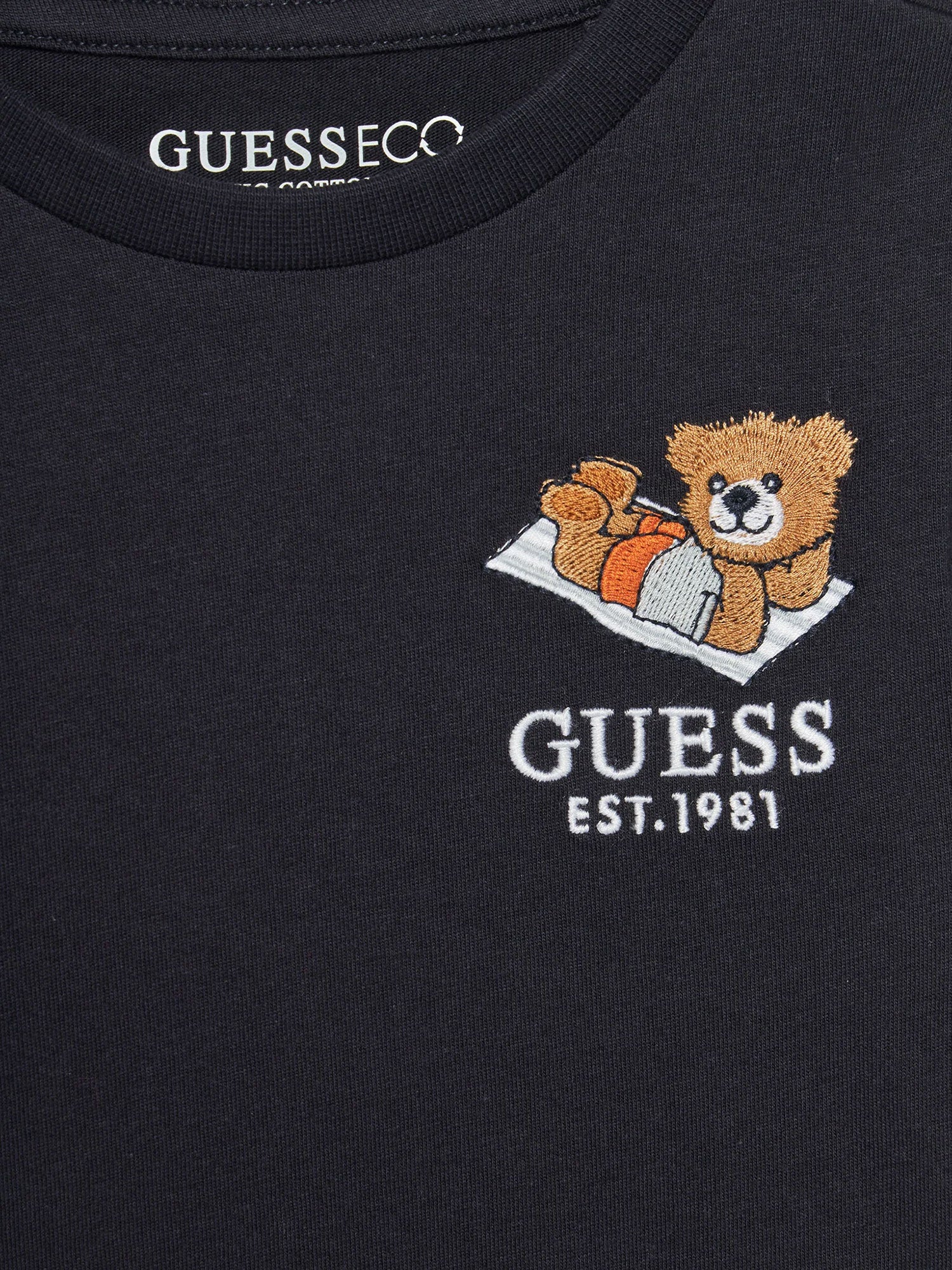 Una maglietta dal fascino irresistibile per i più piccoli, che unisce comodità e stile giocoso. Realizzata in morbido cotone, questa t-shirt è perfetta per accompagnare i bambini nelle loro giornate di gioco e avventura, regalando freschezza e libertà di movimento. L’adorabile applicazione a forma di orsetto, che stringe il classico logo Guess, aggiunge un tocco divertente e originale al capo, rendendolo un must-have per la stagione.