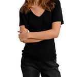 Un classico essenziale rivisitato in chiave contemporanea. Questa t-shirt Molly Bracken è realizzata in tessuto a costine elasticizzato che valorizza la silhouette con comfort e semplicità. Il design con scollo a V e maniche corte dona un tocco femminile e versatile, perfetto per essere indossato da solo o sotto blazer e giacche. Un capo must-have per creare look casual, minimal o più sofisticati a seconda degli abbinamenti.