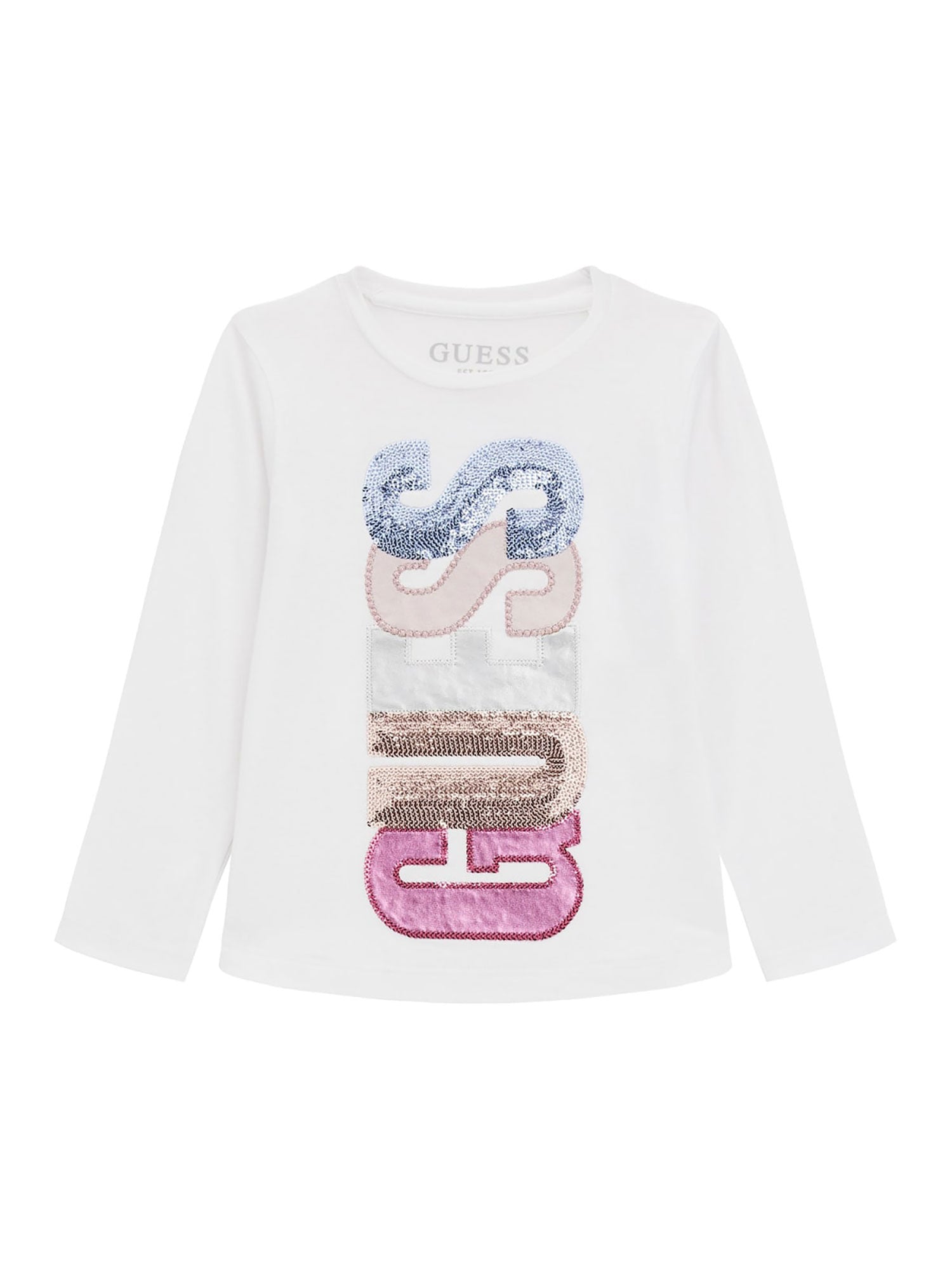 T-shirt Guess ,modello a manica lunga, con collo tondo e dettagli paillettes su parte frontale.
