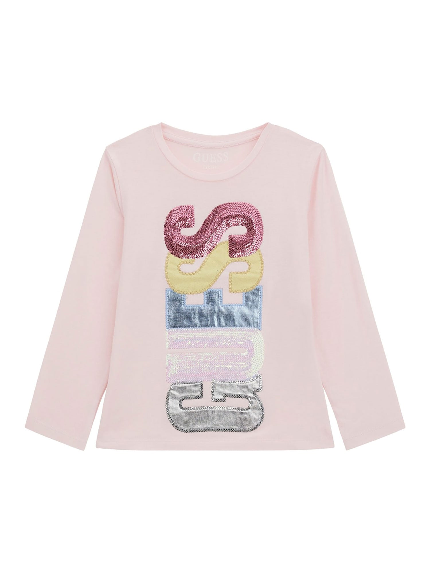 T-shirt Guess, modello a manica lunga, con collo tondo e dettagli paillettes su parte frontale.