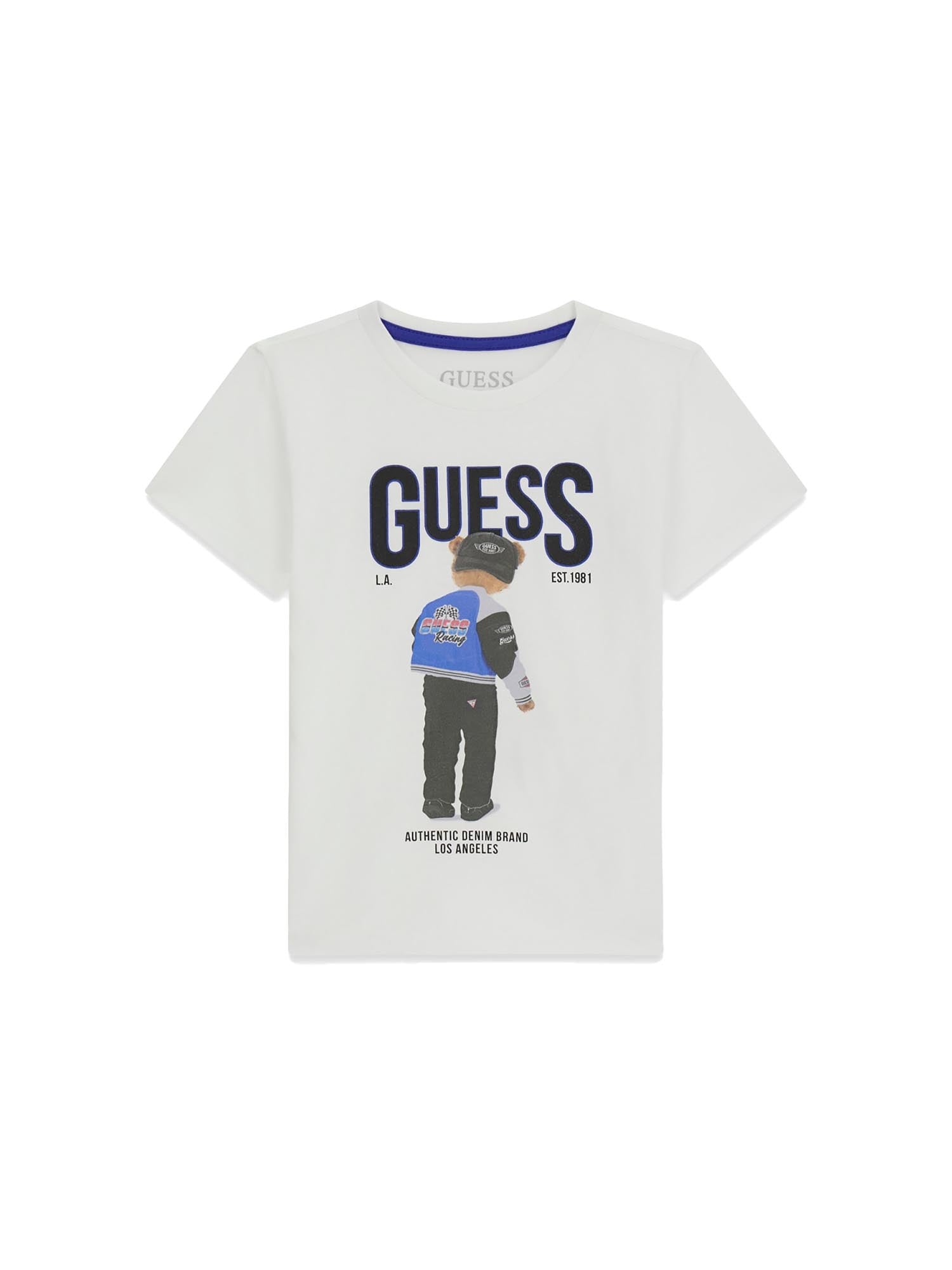 T-shirt Guess neonato con teddy iconico. Un capo allegro e super riconoscibile, perfetto per dare un tocco di colore e personalità al look.