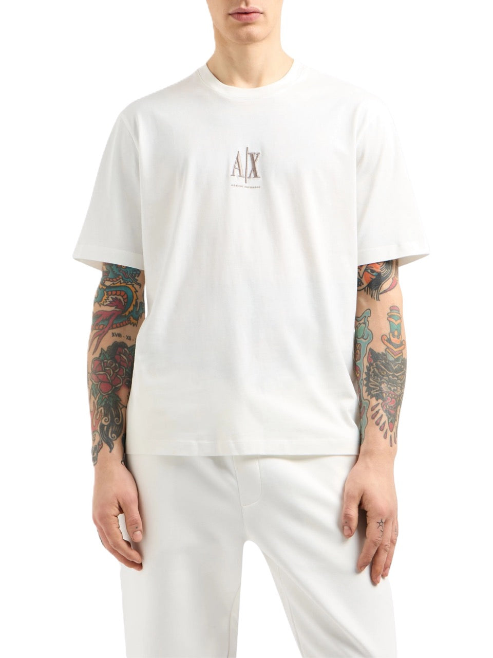 Tshirt ricamo Armani Exchange Uomo Bianco