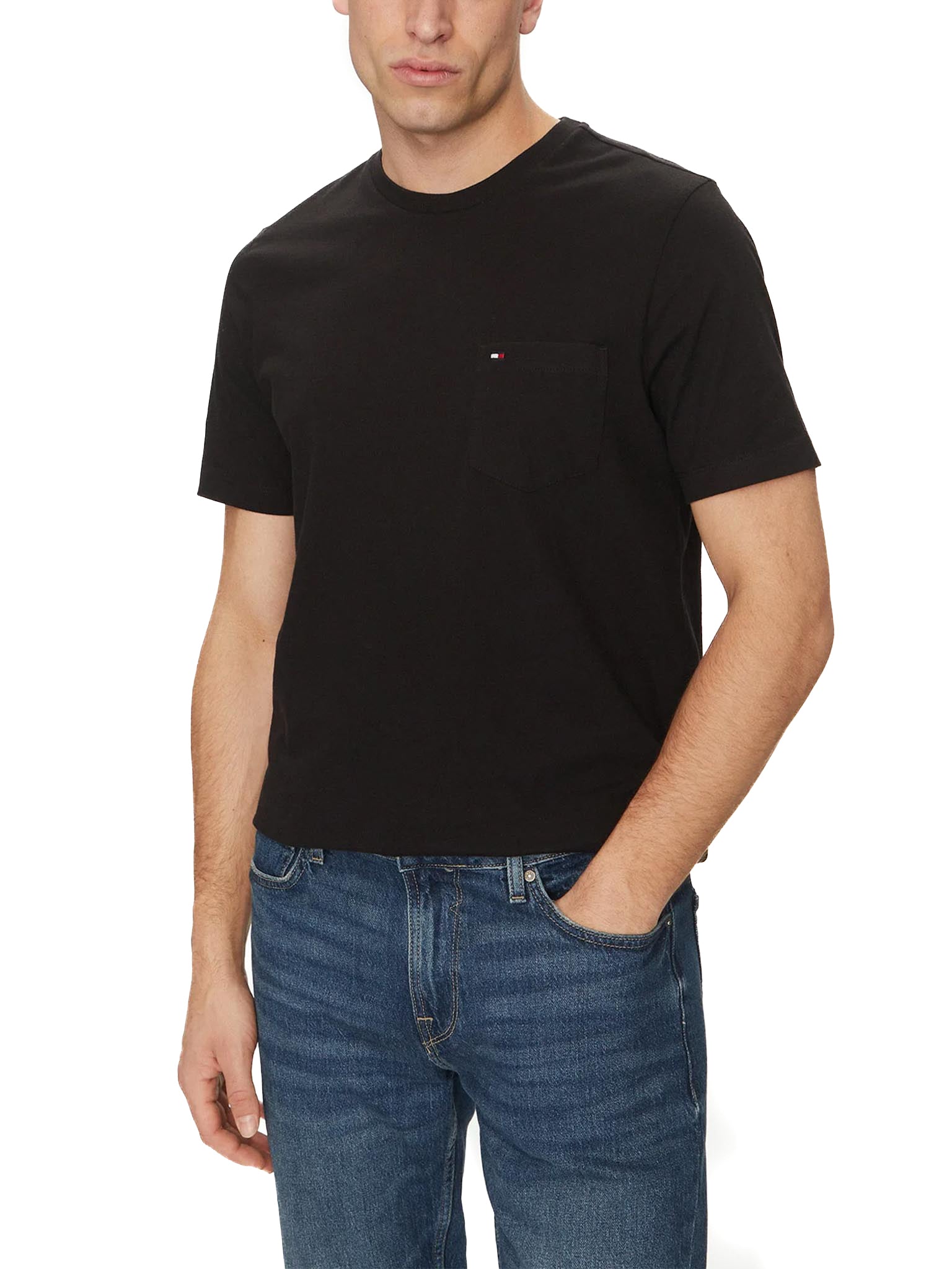 T-shirt Tommy Hilfiger con taschino e logo in cotone biologico nero