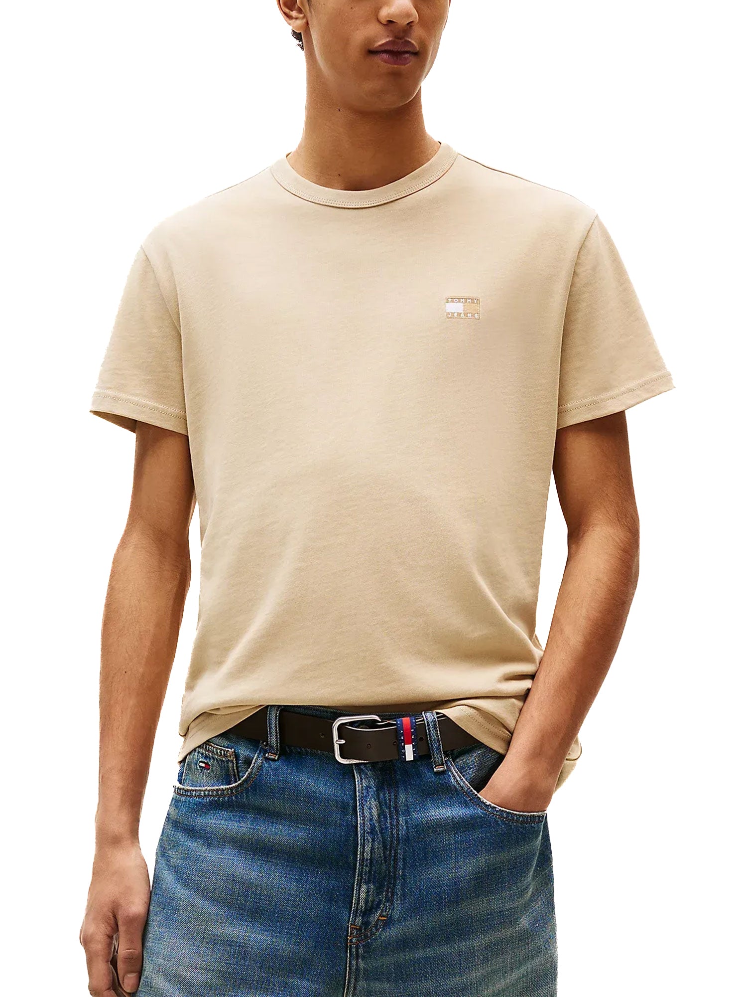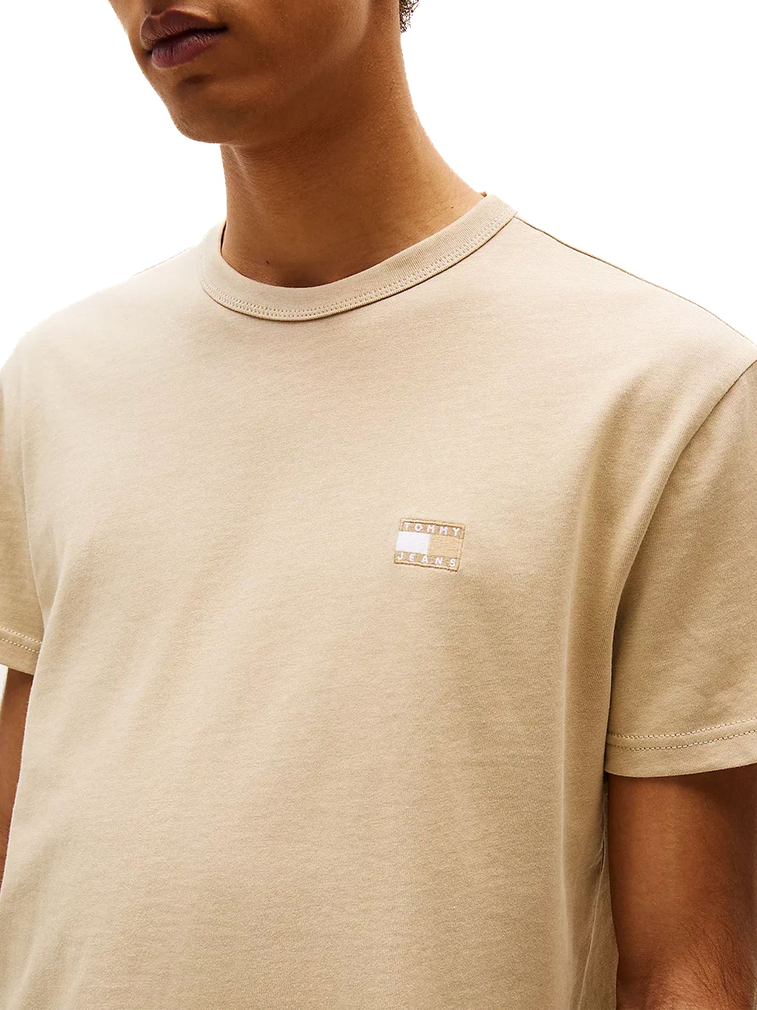 T-shirt maniche corte con badge frontale beige