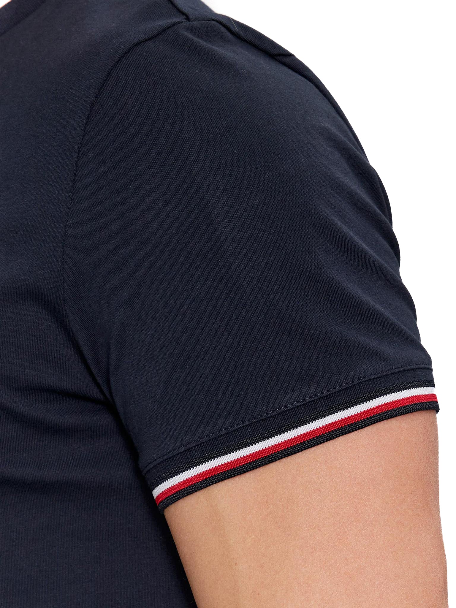 Un classico intramontabile dal tocco distintivo: questa t-shirt Tommy Hilfiger è un capo essenziale per ogni guardaroba maschile. Il logo minimal stampato sul petto e i profili a contrasto sulle maniche richiamano i colori iconici del brand, aggiungendo carattere a un look casual.