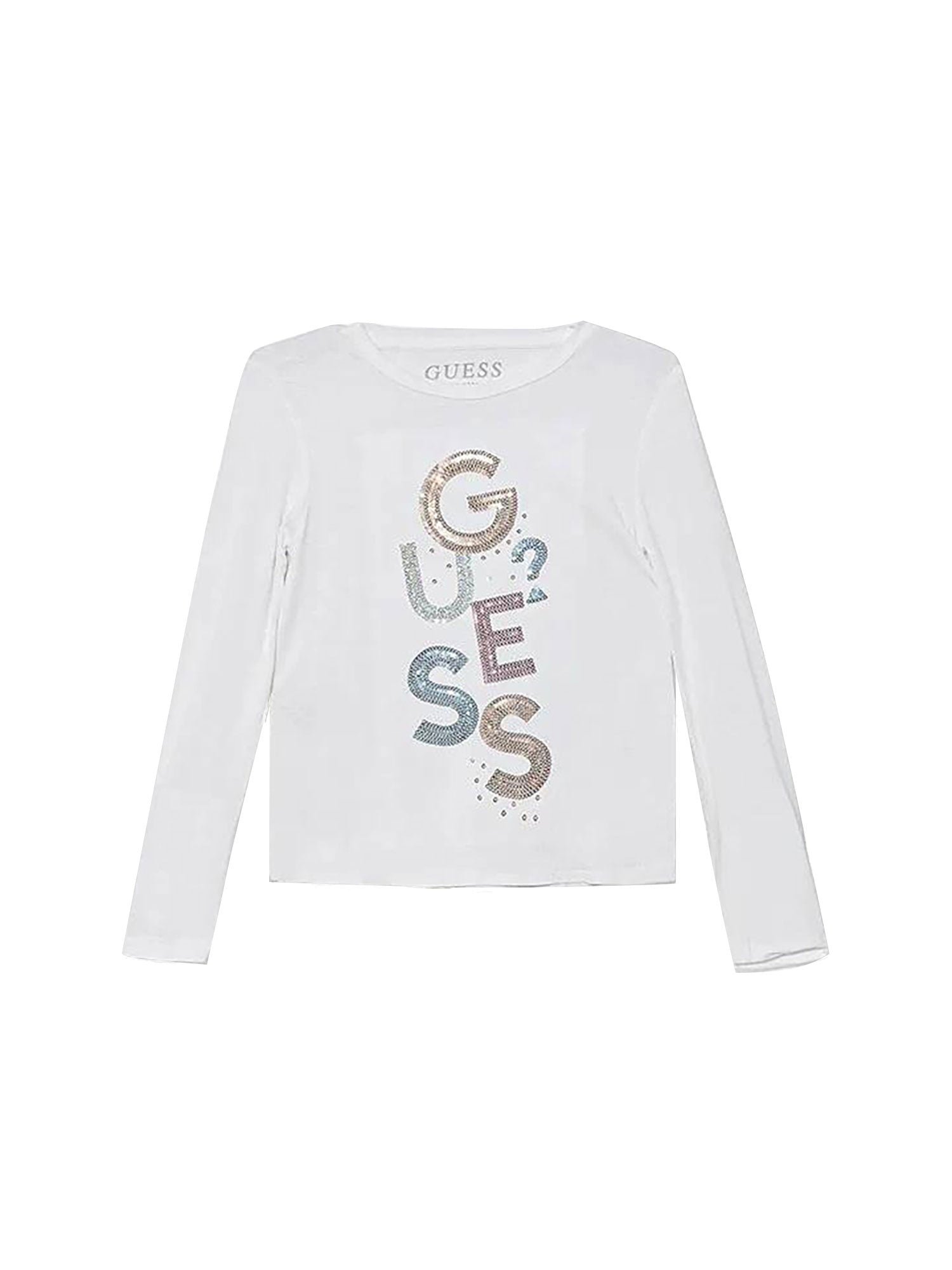T-shirt Guess bambina manica lunga logo paillettes bianco