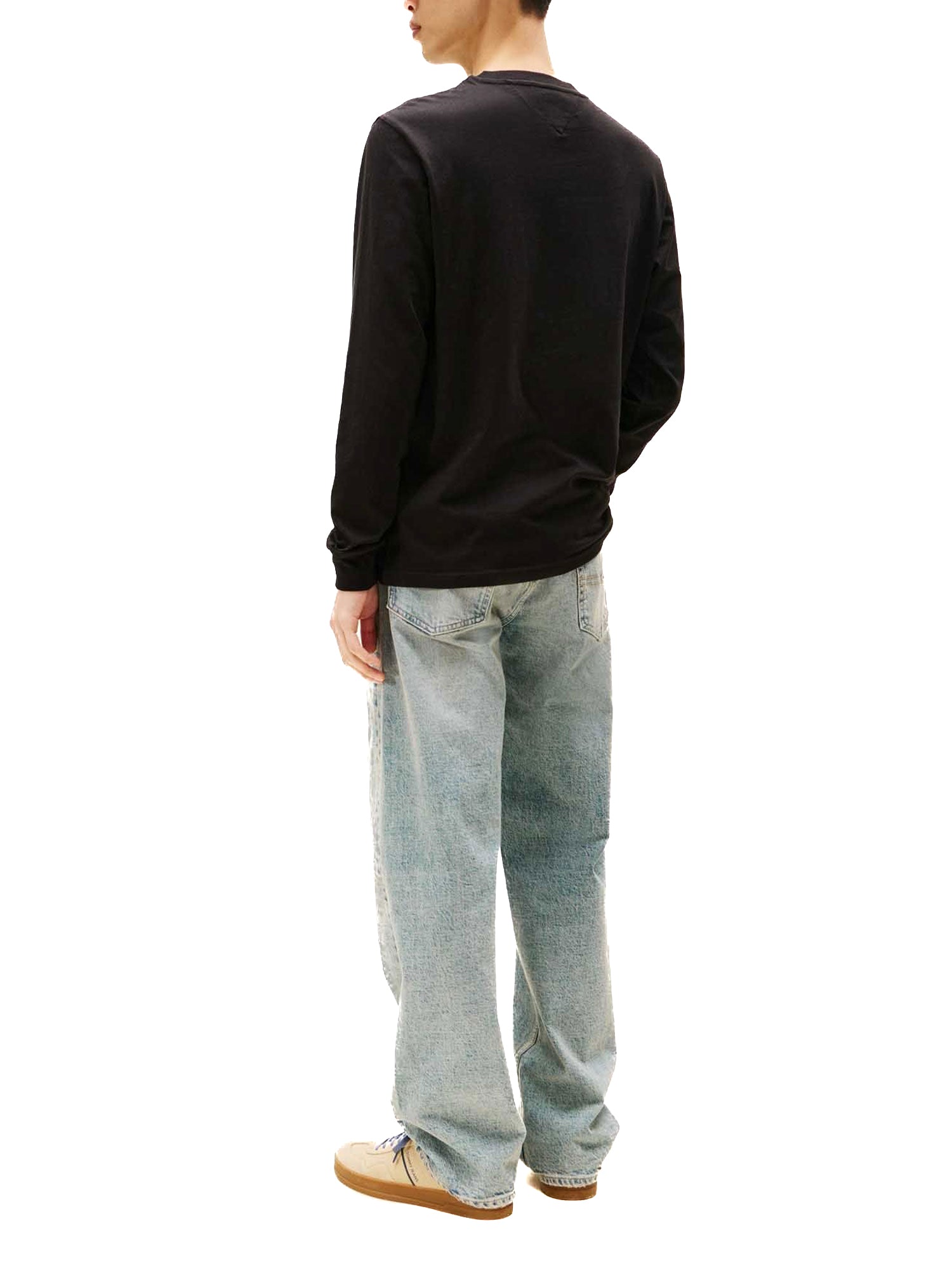 T-shirt maniche lunghe slim fit con logo lettering nero