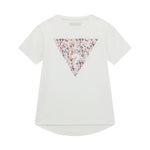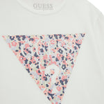 Aggiungi un tocco di freschezza e stile al guardaroba della tua bambina con questa t-shirt Guess in cotone organico. Il design presenta una stampa triangolare "GUESS" con un delicato motivo floreale colorato. La maglia ha un taglio comodo con maniche corte, perfetta per le giornate più calde o per un'occasione speciale. Il mix di eleganza e comfort la rende un must-have per il suo armadio.