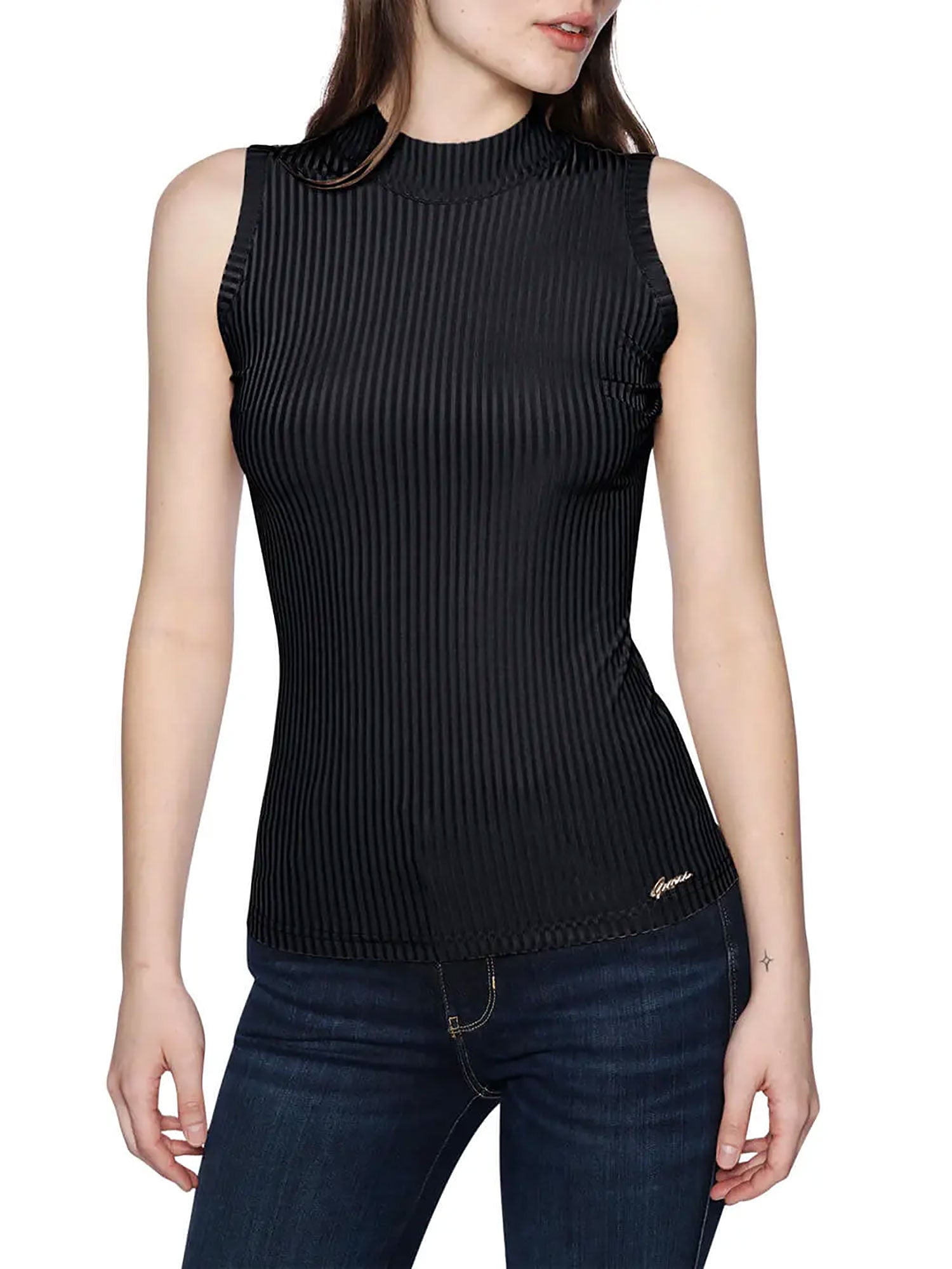 - Chiusura con bottoni sul collo, logo GUESS sul fondo