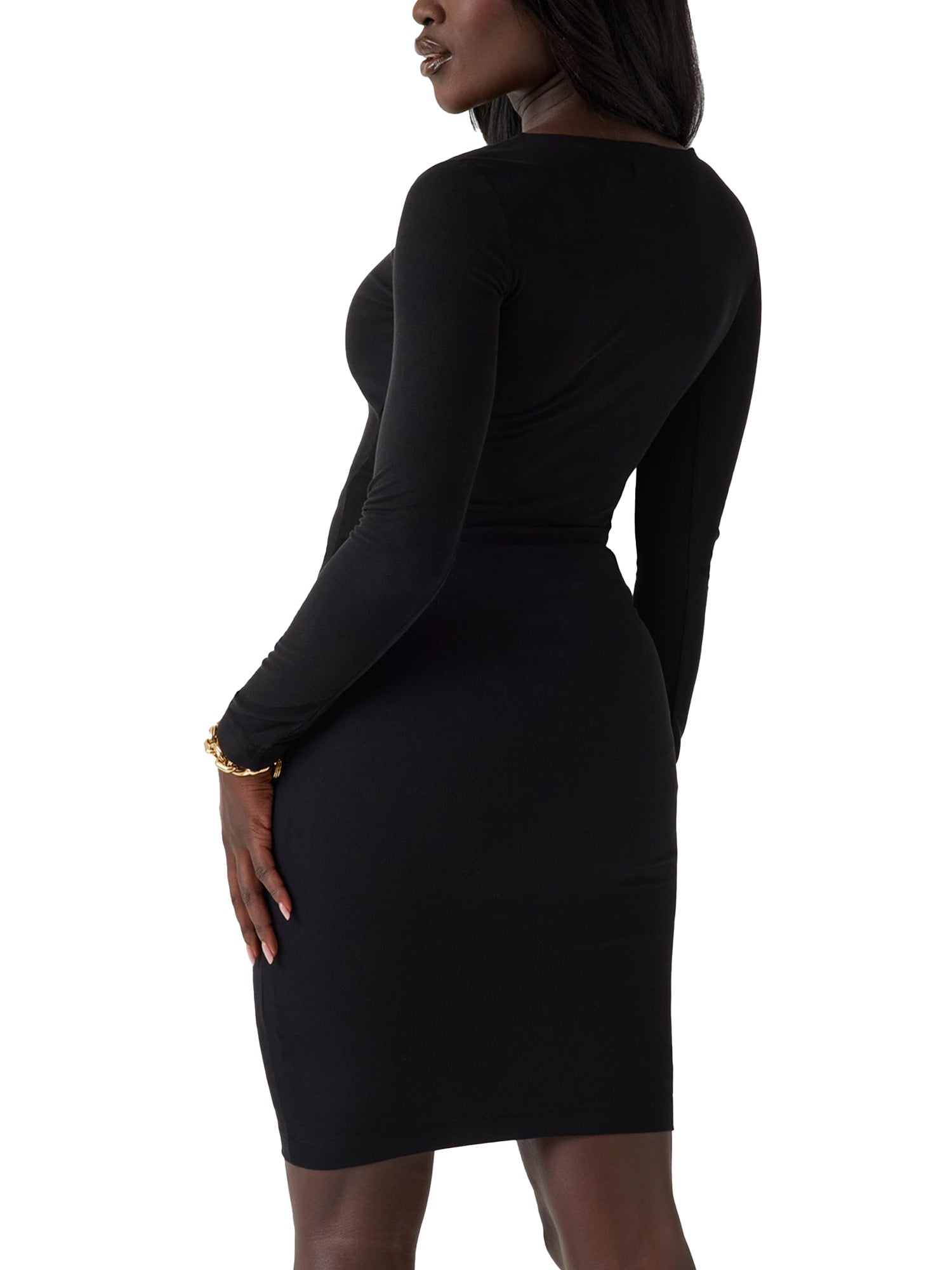Top manica lunga Guess donna. Modello cut-out in misto modal con bottone decorativo sullo scollo.