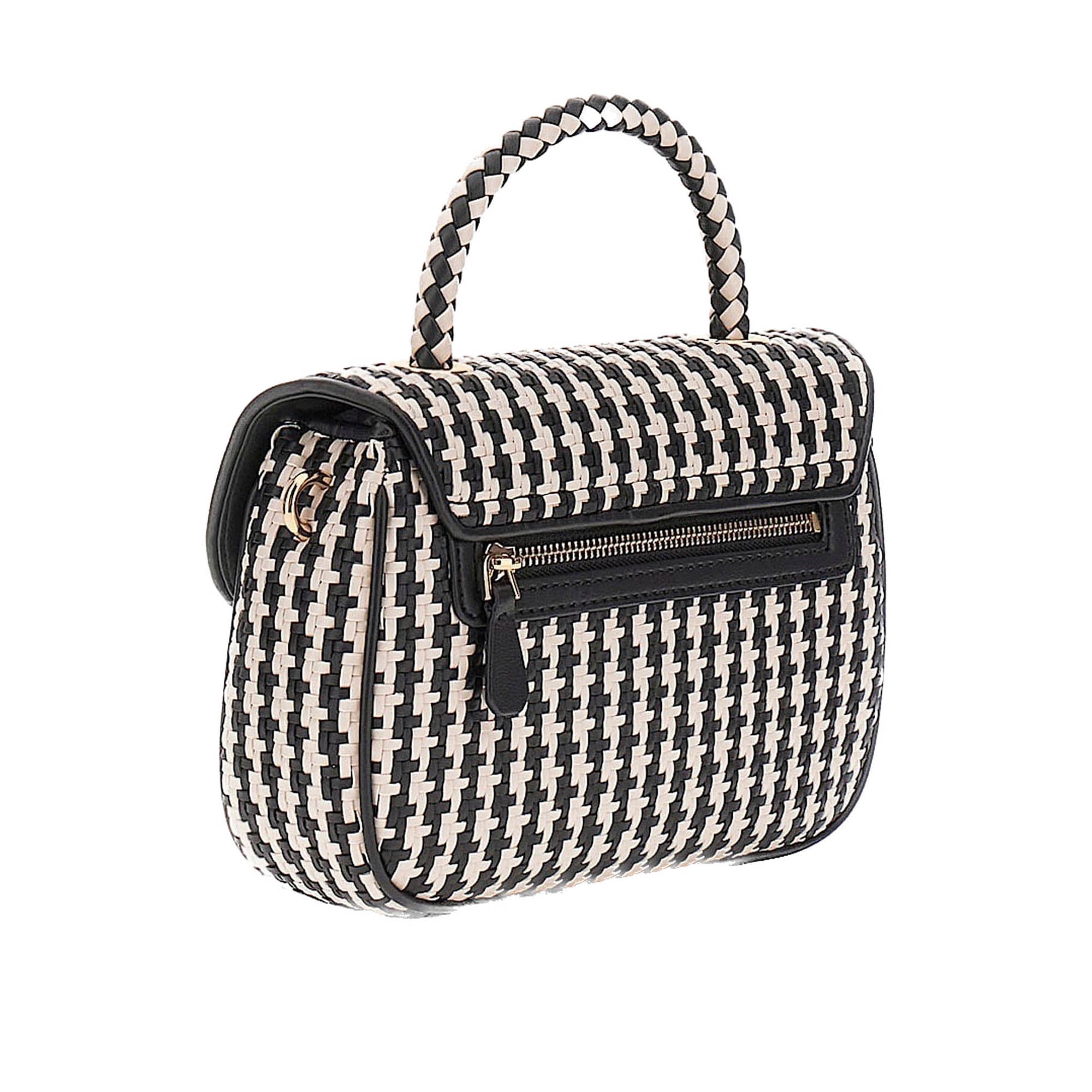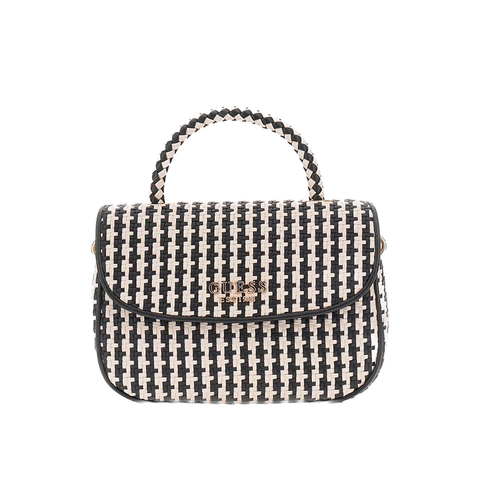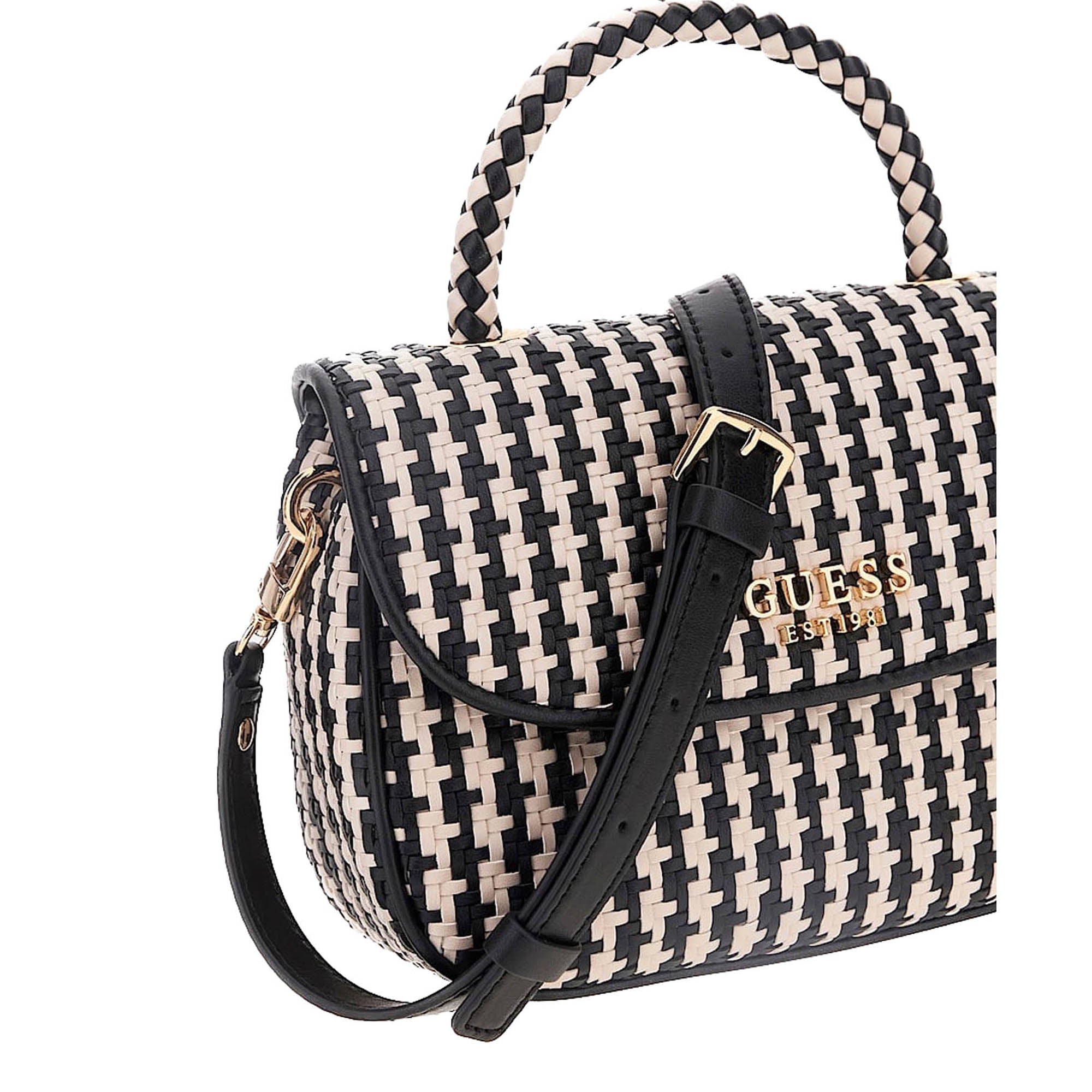 Borsa Guess donna in ecopelle intrecciata bicolor, dal design elegante e moderno. Il motivo intrecciato nei toni del nero e del beige regala un effetto tridimensionale e raffinato, perfetto per valorizzare ogni look.