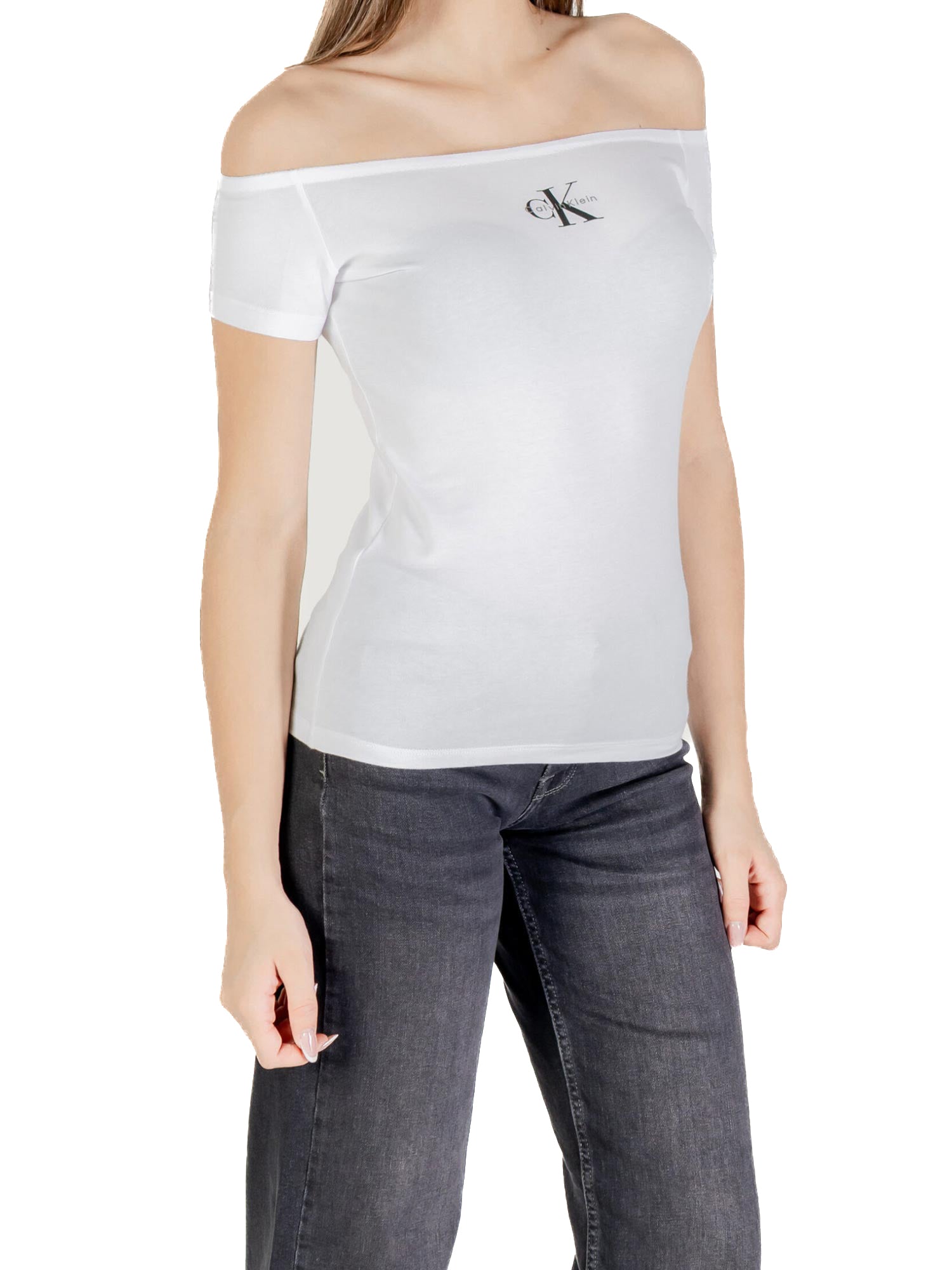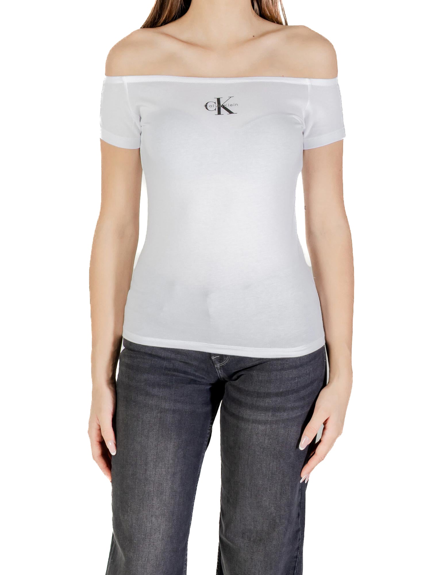 Top Calvin Klein spalle scoperte e logo monogram bianco