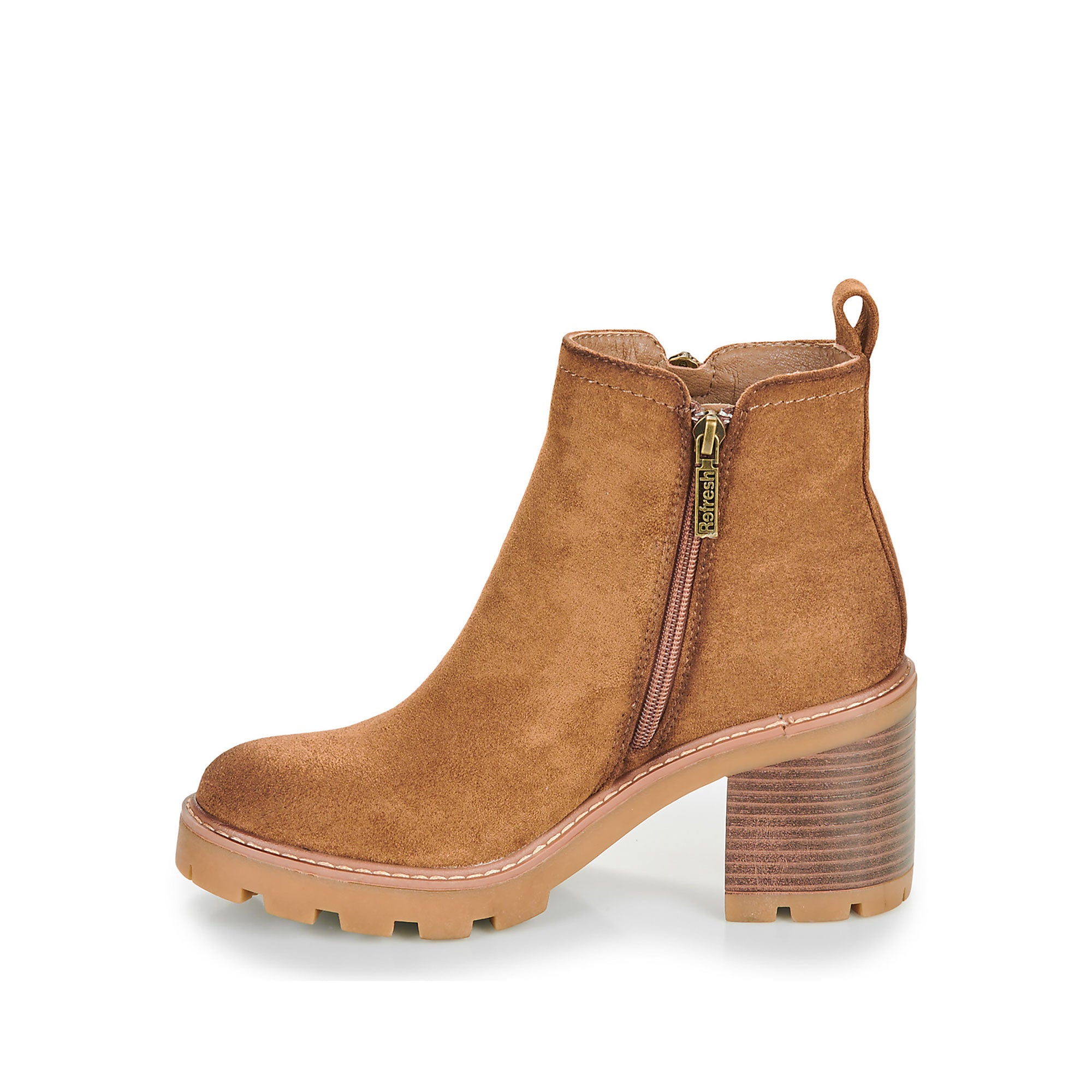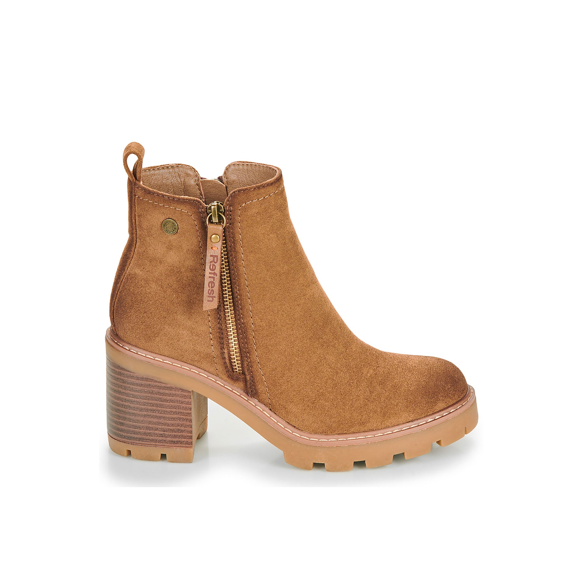 Questi stivaletti Refresh combinano praticità e design moderno, diventando il modello perfetto da indossare tutti i giorni in città. La silhouette essenziale è valorizzata dal tacco largo e dalla suola carrarmato che assicura stabilità e comfort in ogni passo.