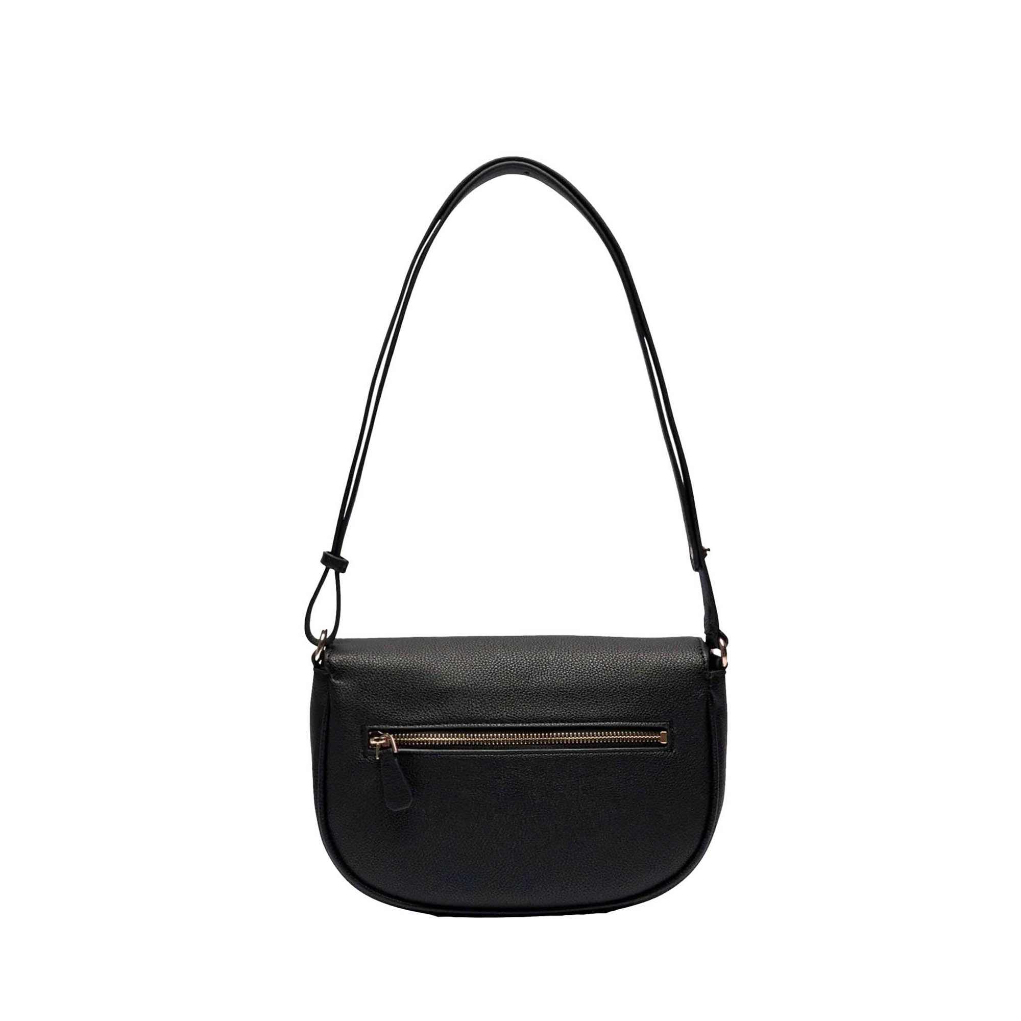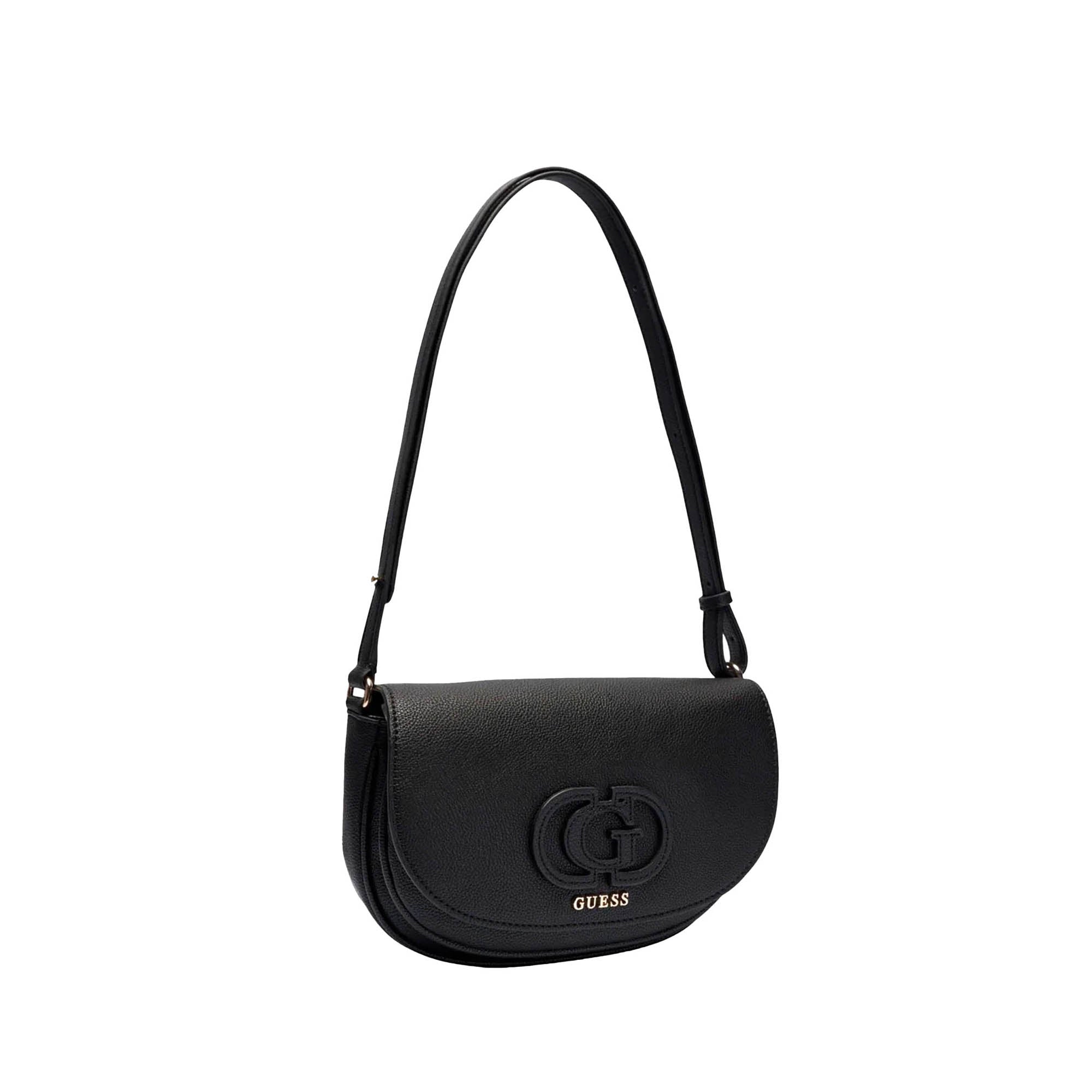 Borsa Guess donna in similpelle, dal design compatto e moderno. La patta frontale arrotondata è impreziosita dal logo GG in rilievo e dall’iscrizione dorata Guess, per un tocco elegante e discreto.