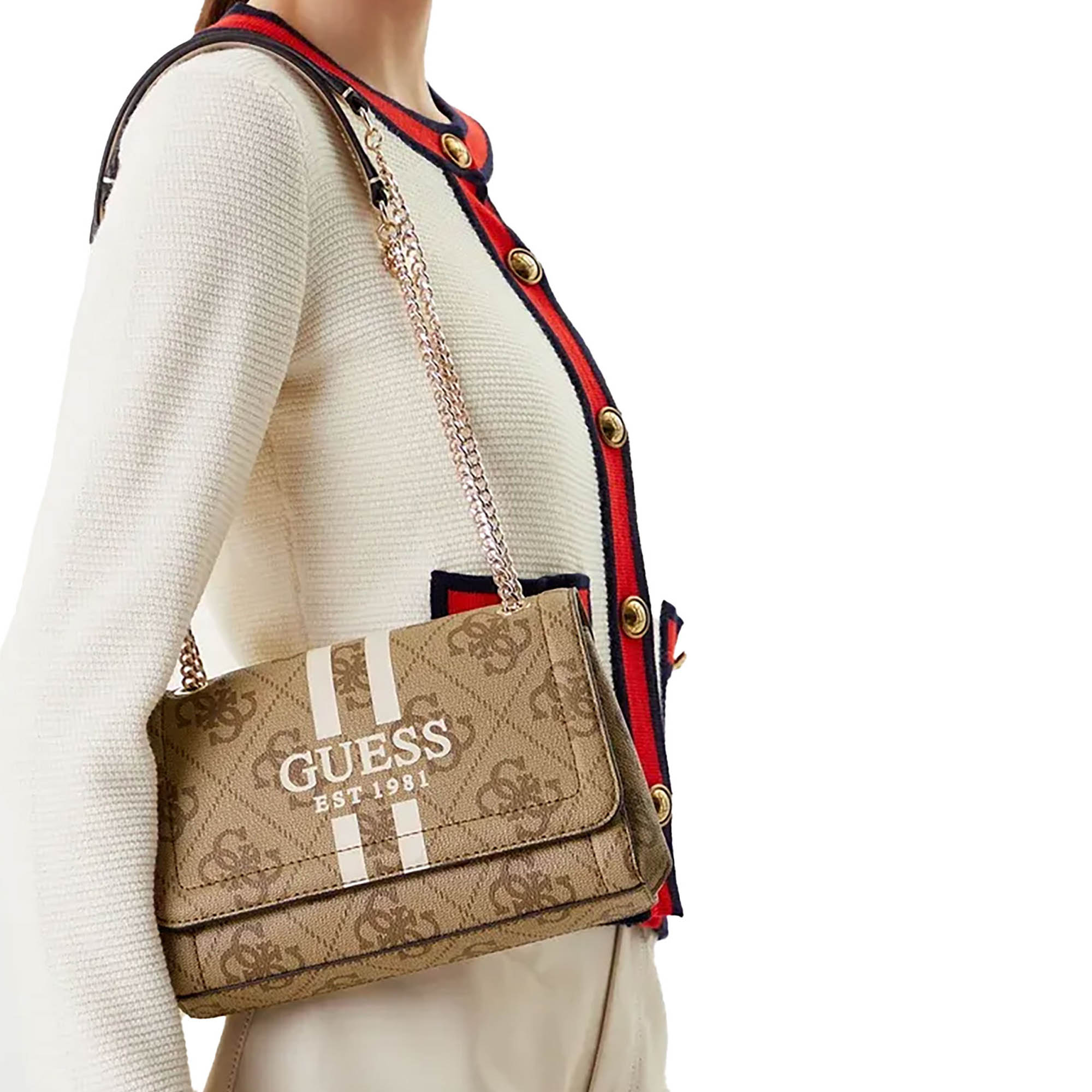Borsa a tracolla Guess donna Noelle II stripes latte logo
