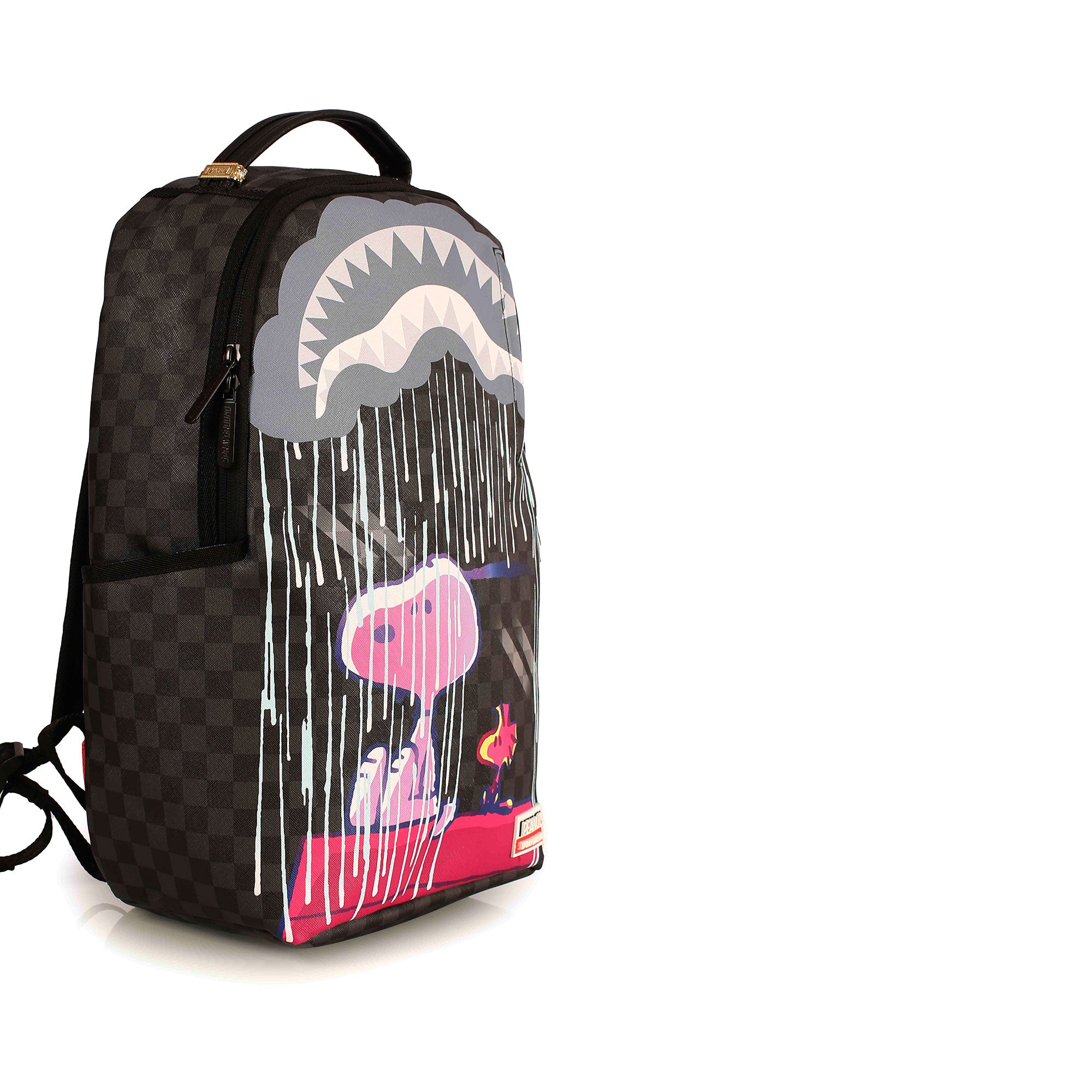 Un accessorio compatto ma dal tono poetico e contemporaneo, lo zaino bimba Sprayground x Peanuts “Sad Snoopy” reinterpreta il classico stile urbano con una nota nostalgica e artistica. Il celebre Shark Mouth si trasforma in una nuvola temporalesca da cui piove su Snoopy e Woodstock, per un design originale e d’impatto. Perfetto per chi vuole esprimere la propria personalità anche nei giorni di pioggia.