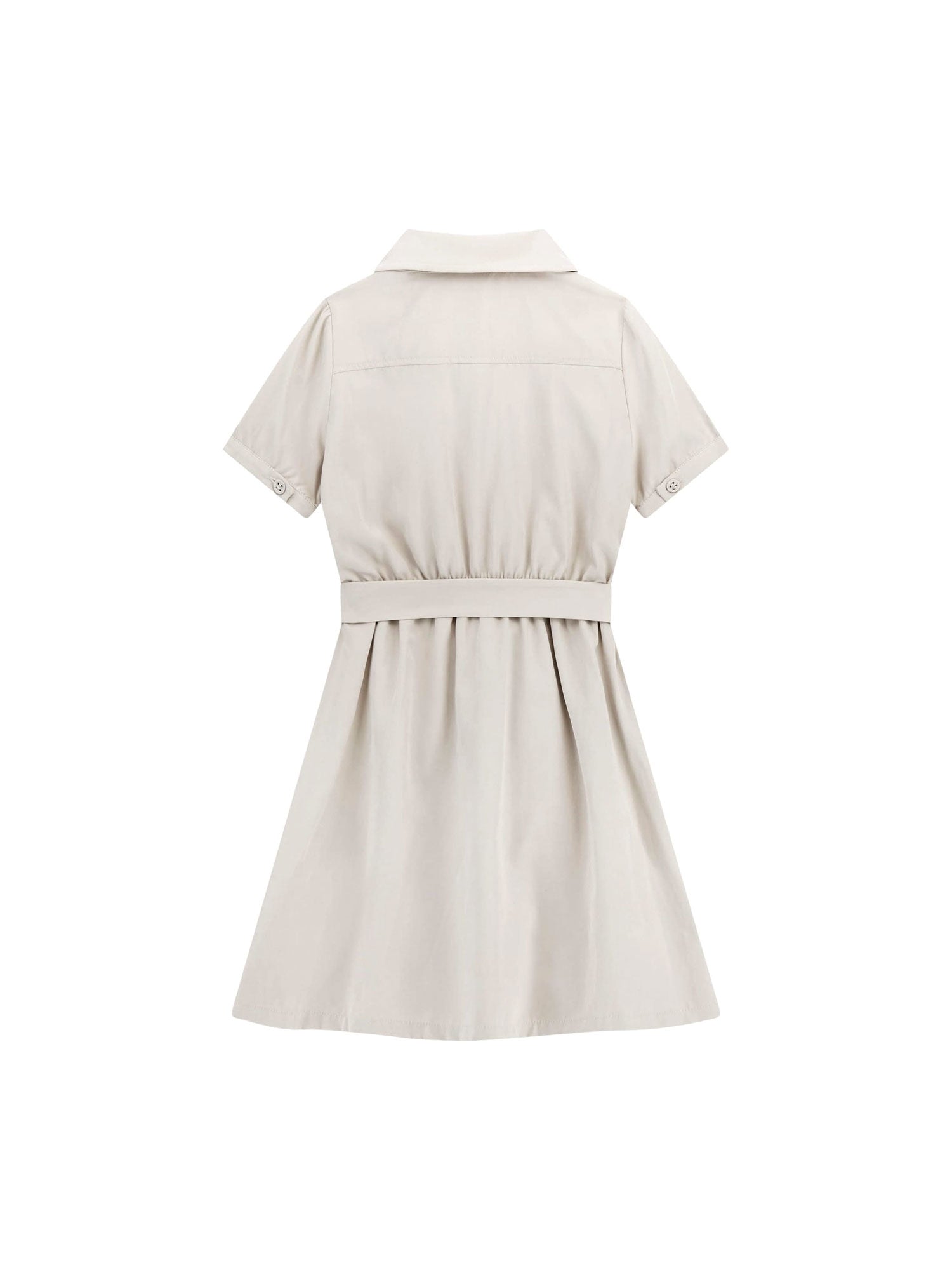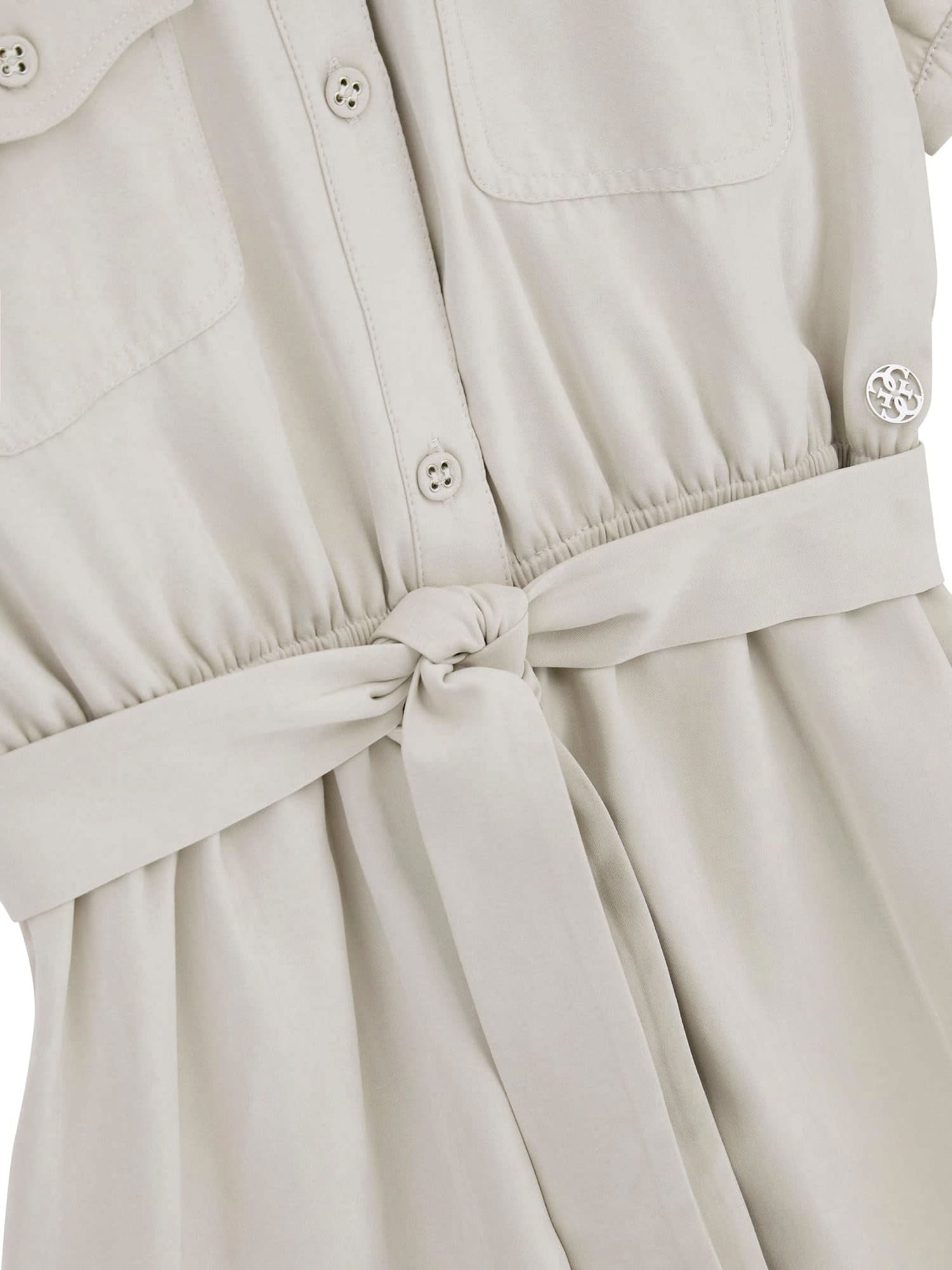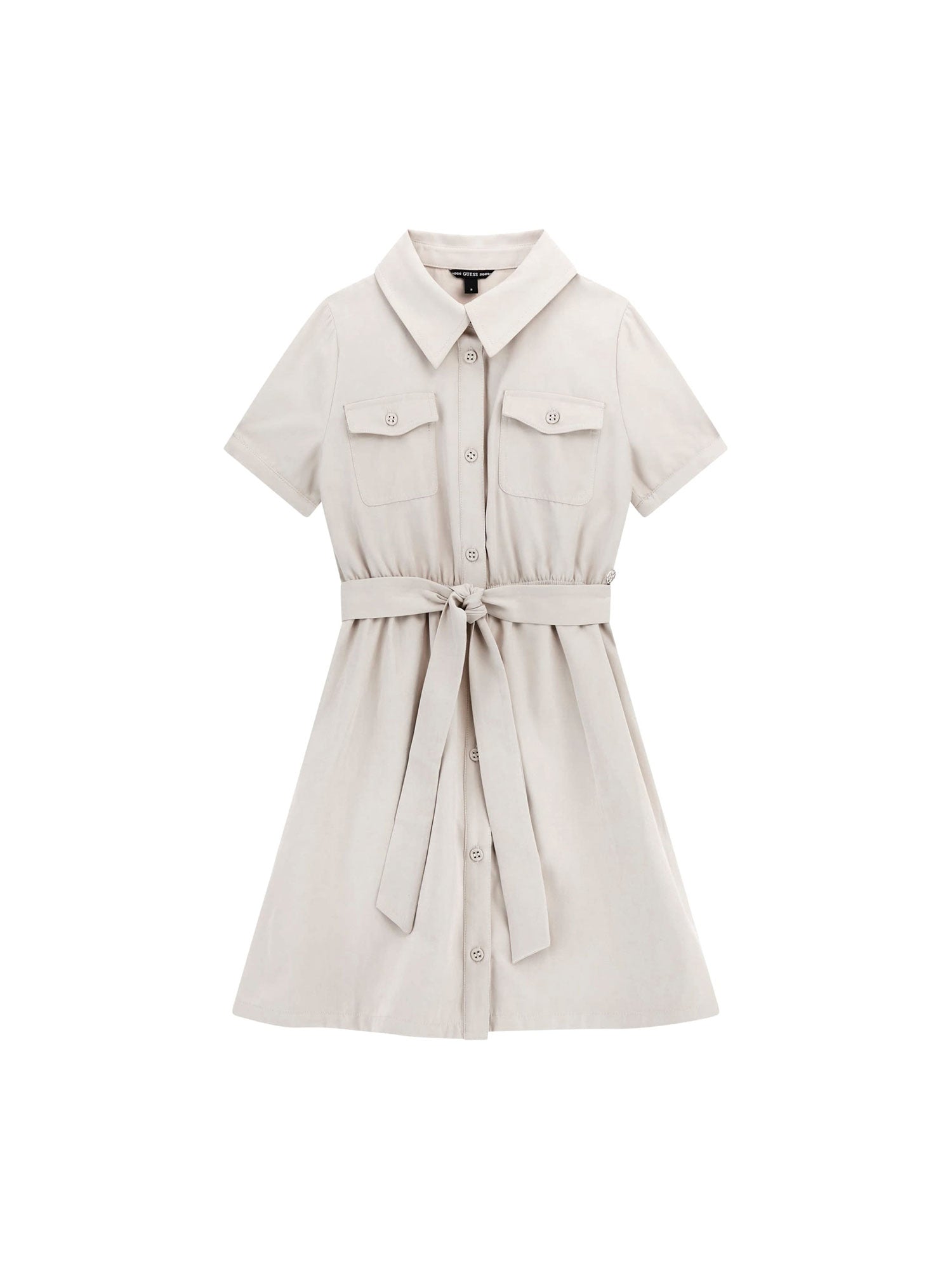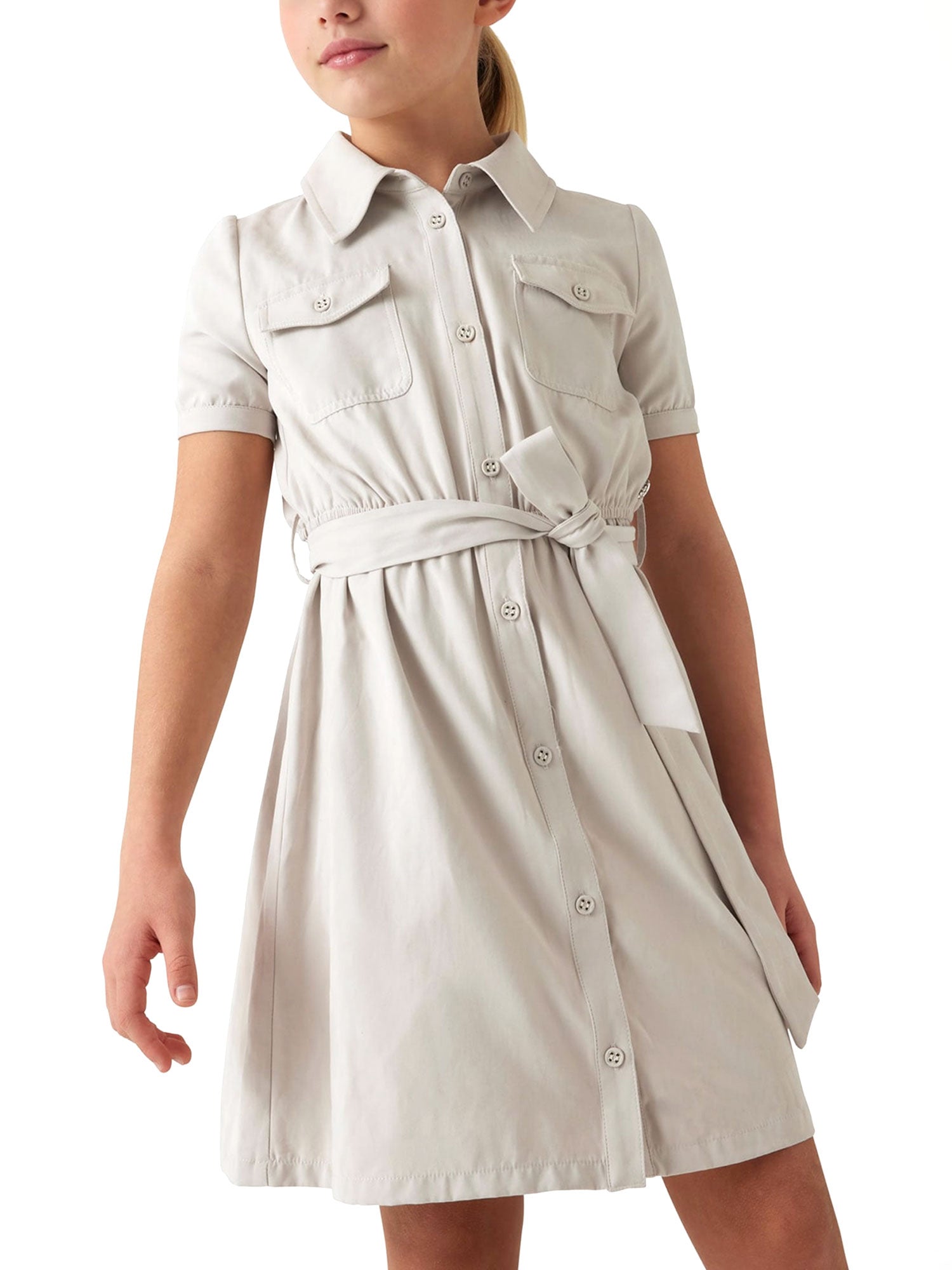 Fresco, versatile e intramontabile: questo abito camicia firmato Guess bambina è il capo ideale per ogni occasione, dal look quotidiano agli eventi più speciali. Realizzato in un morbido tessuto effetto lyocell, è caratterizzato da una linea fluida, un colletto classico e una cintura in vita da annodare per valorizzare la silhouette. I bottoni tono su tono, le tasche applicate sul petto e il dettaglio logo rendono questo modello pratico ma con un tocco raffinato. Un mix perfetto tra stile casual e cura del dettaglio, pensato per accompagnare ogni avventura con eleganza.