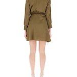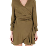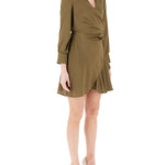 Abito Rinascimento che unisce semplicità e fascino con eleganza. Realizzato in morbido crêpe dalla texture fluida, questo vestito corto è caratterizzato da un design incrociato che valorizza la silhouette con raffinatezza. Lo scollo a V dona un tocco femminile e slancia la figura, mentre le maniche lunghe con polsino aggiungono un’eleganza discreta perfetta per ogni occasione.
