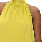 Abito lungo Vicolo smanicato in tessuto fluido, caratterizzato da una linea ampia e scivolata che dona movimento e leggerezza alla silhouette. Il collo alto drappeggiato conferisce un tocco sofisticato, con chiusura posteriore a fiocco che aggiunge un dettaglio elegante. Le tasche laterali inserite a filo completano il design con una nota di praticità.