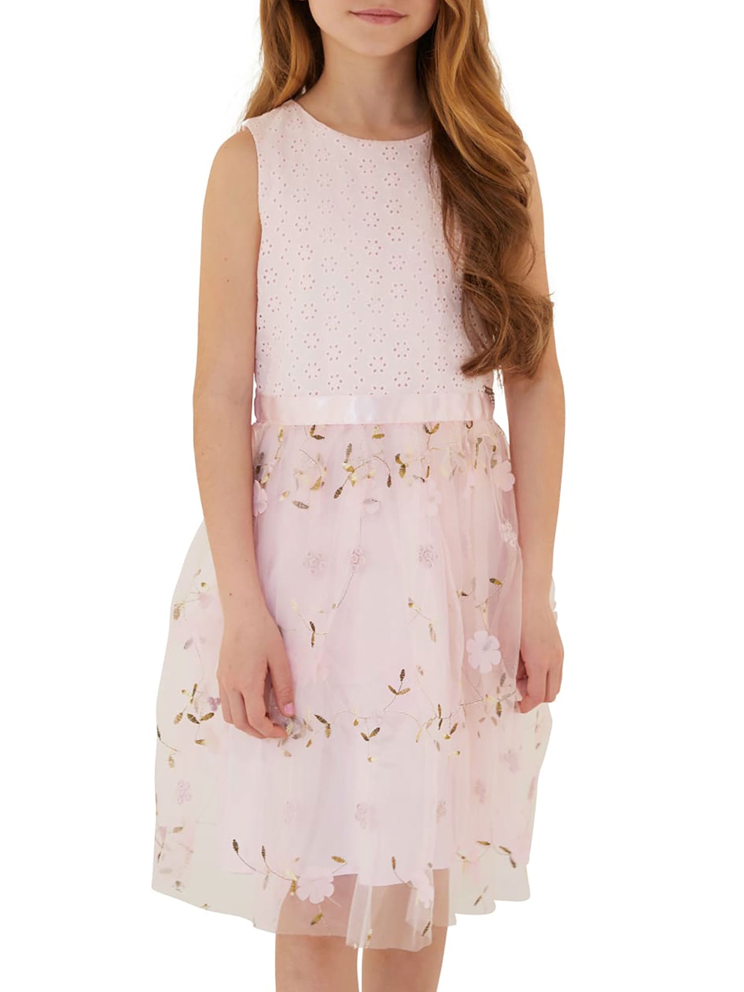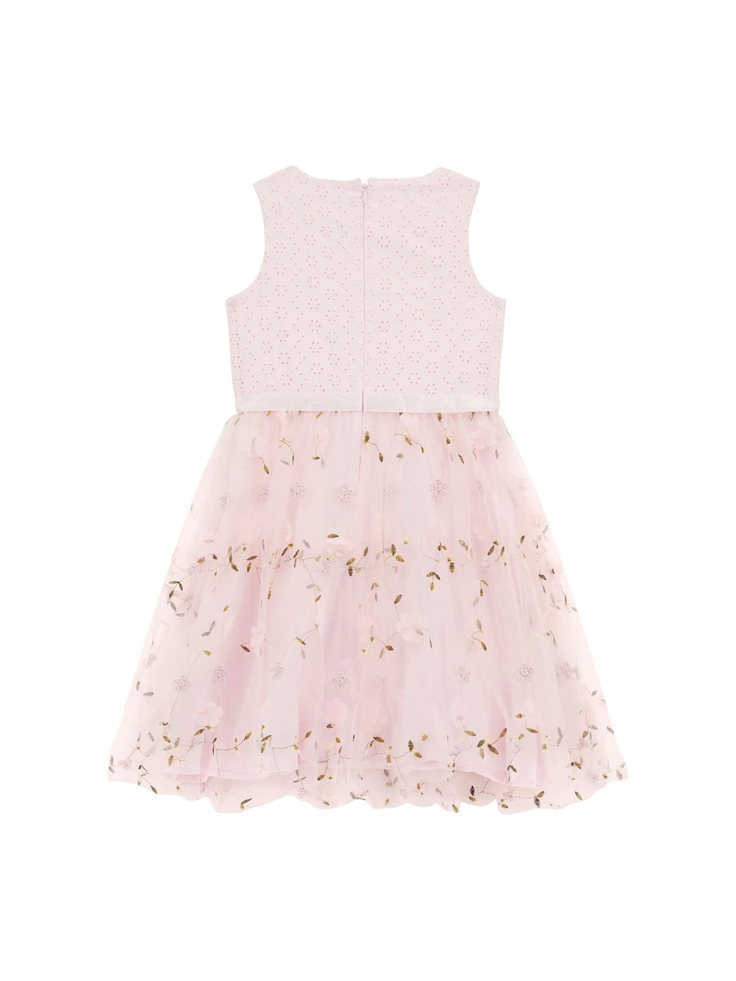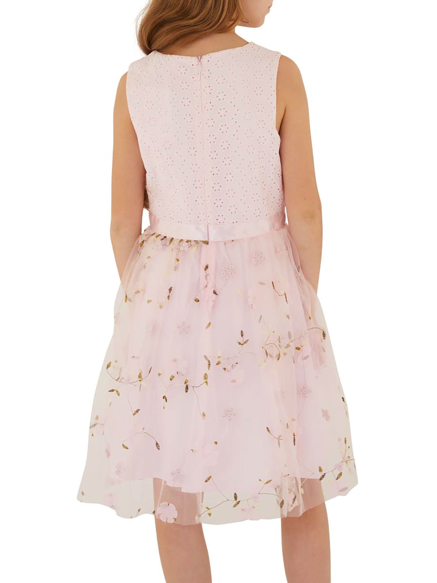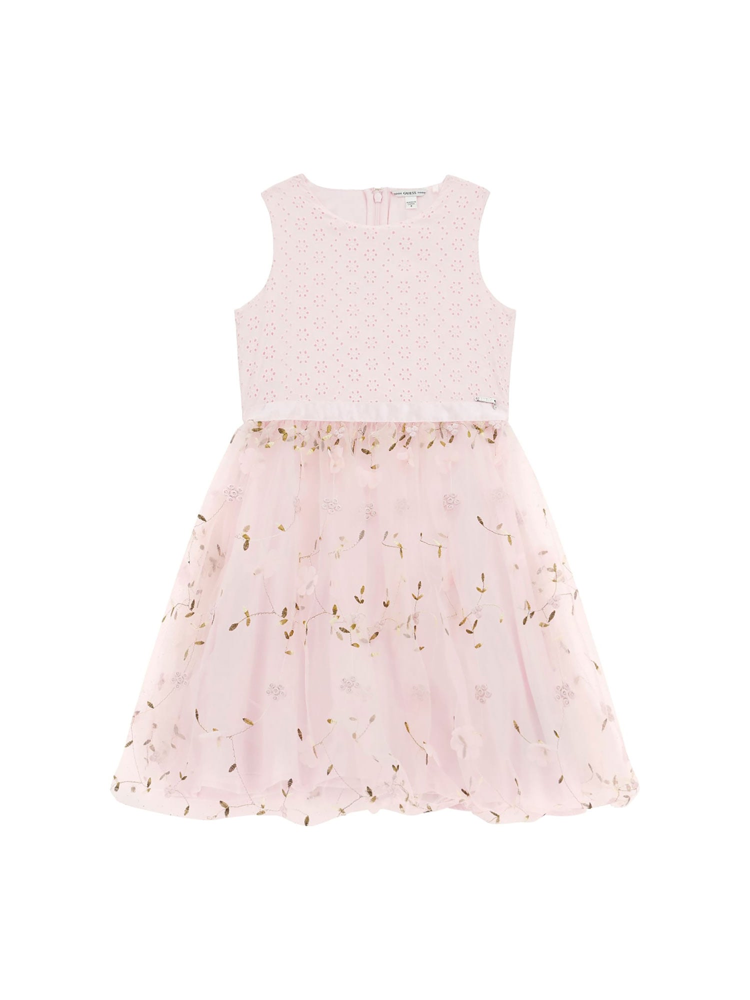 Abito tulle con ricamo sangallo e floreale cerimonia bambina rosa