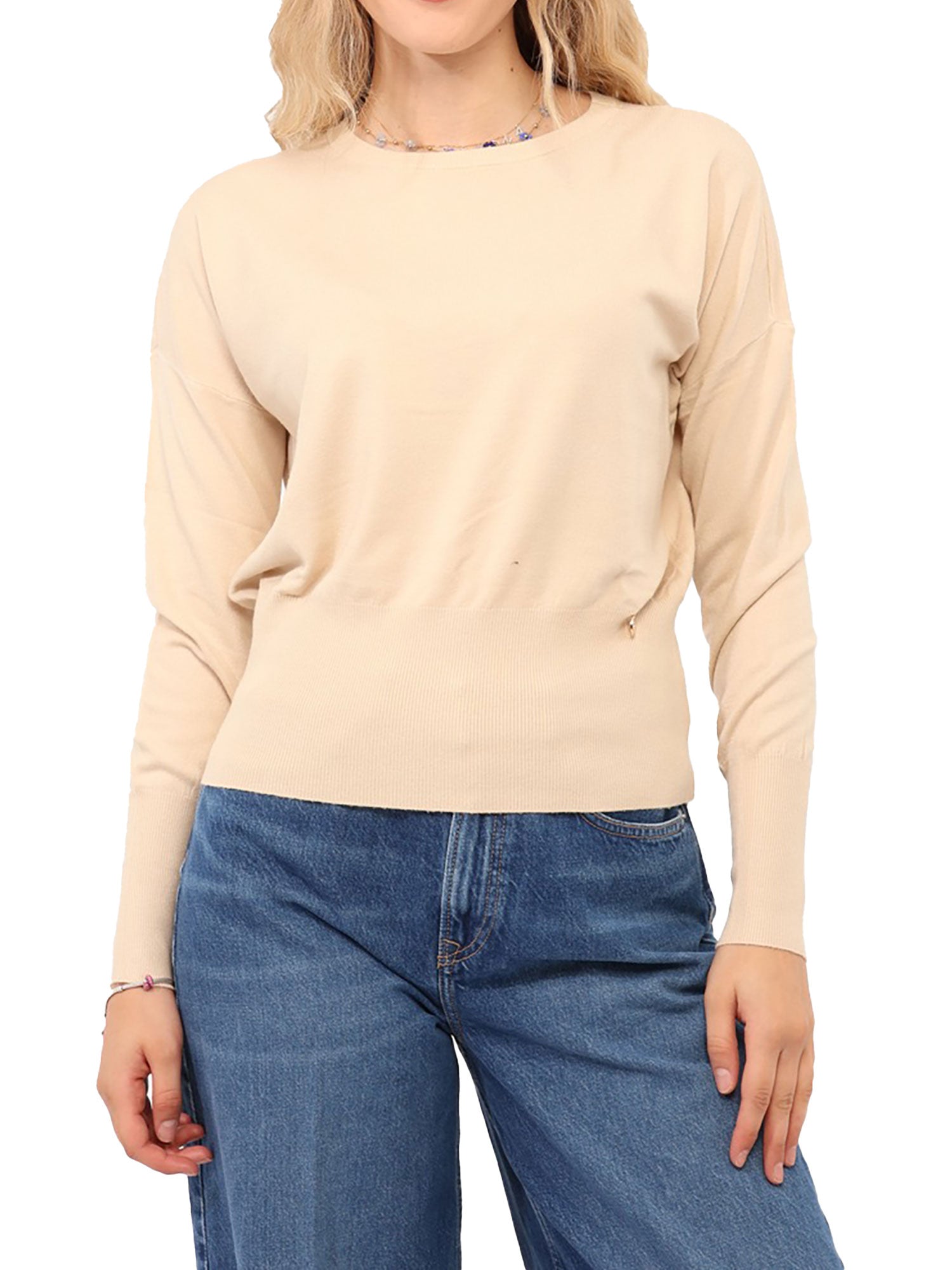 Maglia girocollo Yes Zee donna manica pipistrello beige