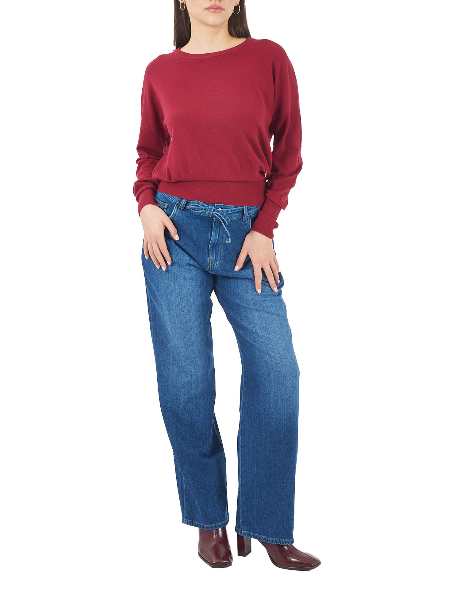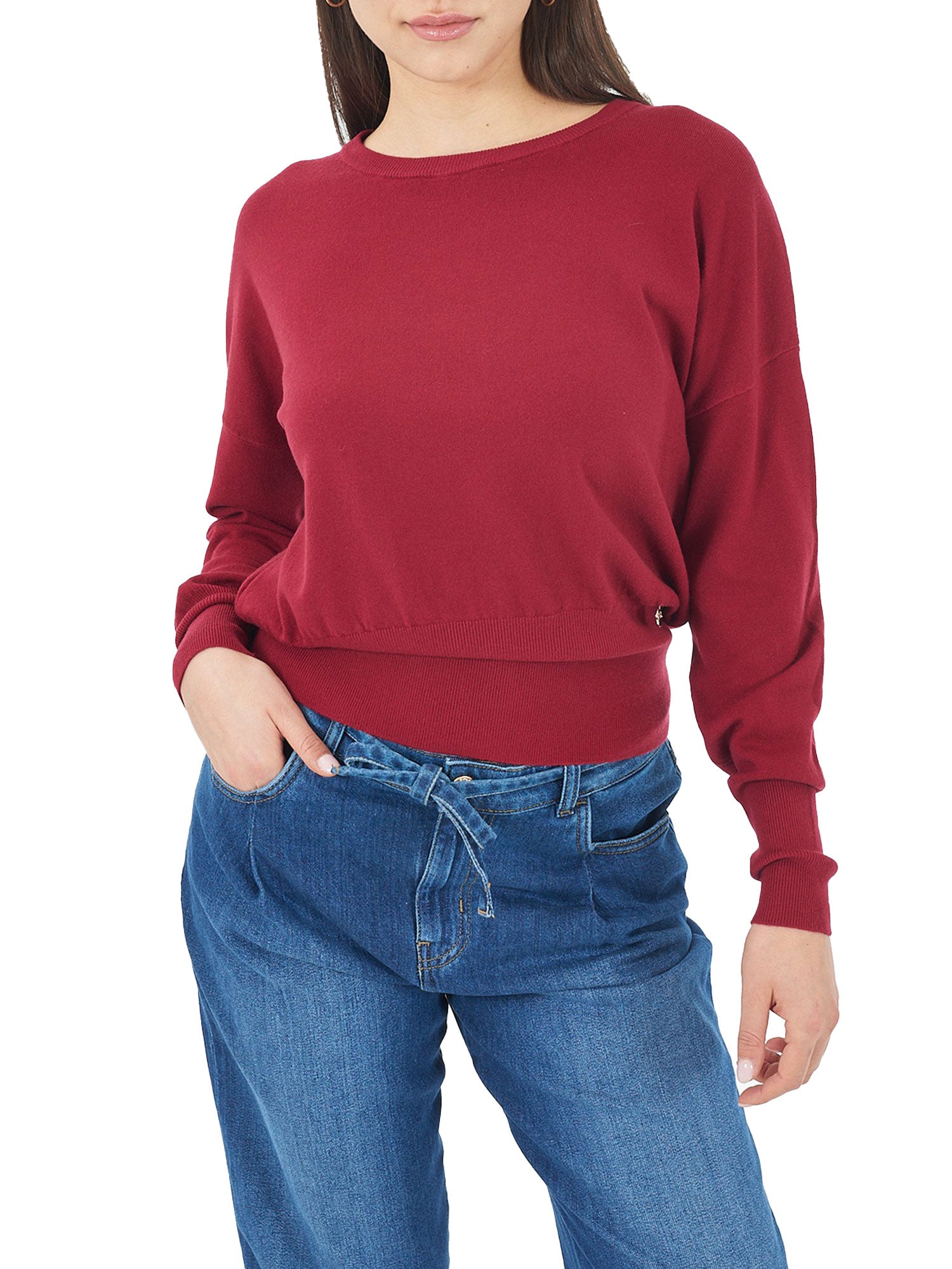 Maglia girocollo Yes Zee donna manica pipistrello rosso