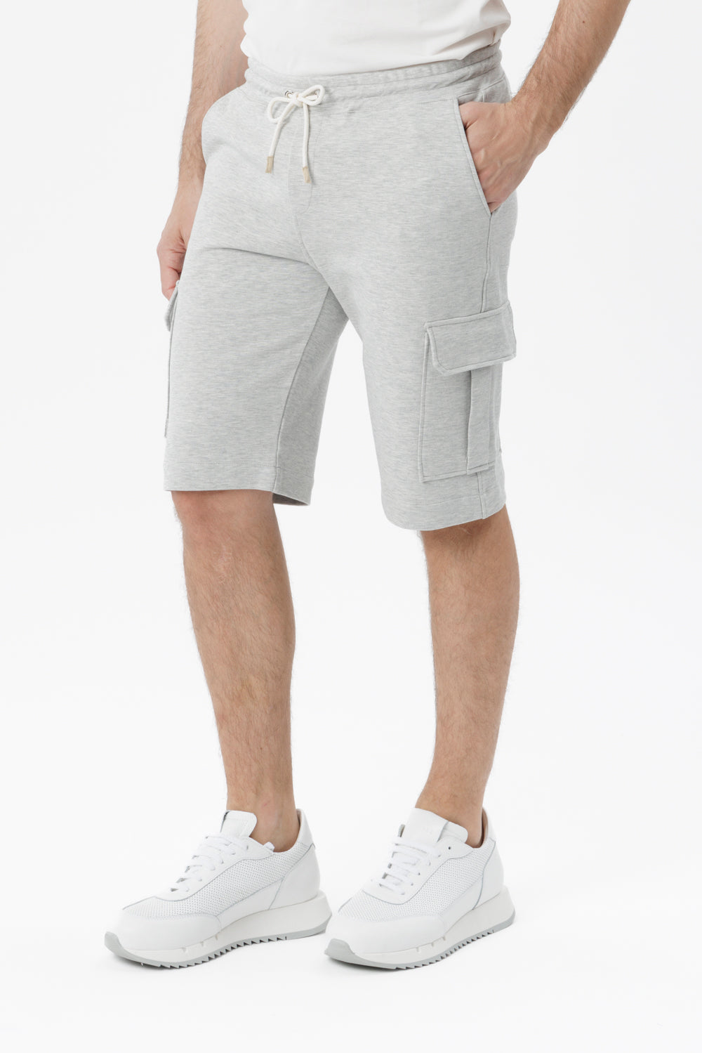 Essenziale e sofisticato, questo bermuda cargo rappresenta l’incontro perfetto tra funzionalità e stile contemporaneo. Realizzato in 100% cotone di alta qualità, offre una sensazione di morbidezza naturale sulla pelle e garantisce comfort assoluto anche nelle giornate più dinamiche. Il design pulito è arricchito da pratiche tasche cargo laterali. Il dettaglio del cordino in contrasto aggiunge un tocco casual-chic, mentre la finitura sartoriale valorizza la silhouette senza costringerla.