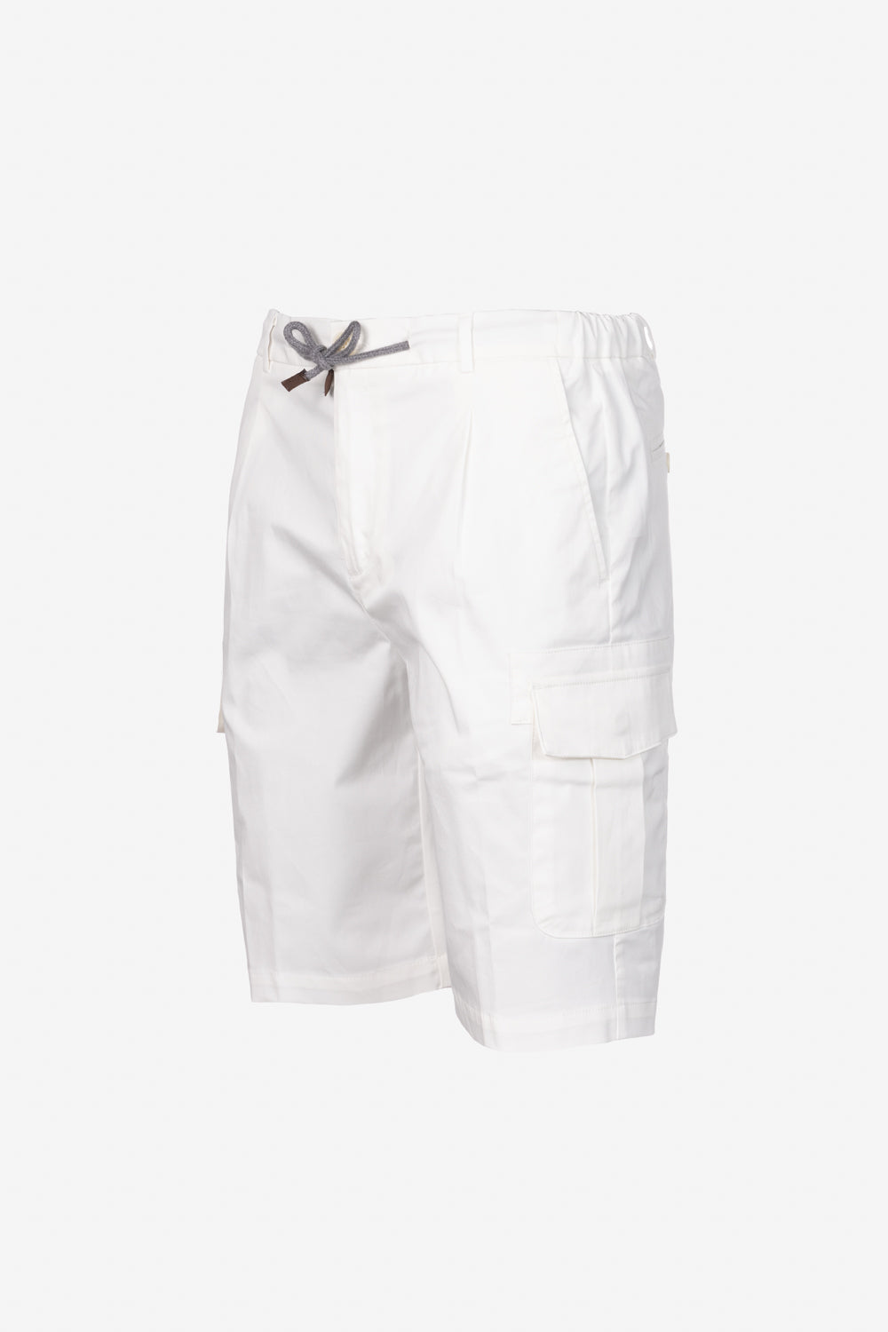 Bermuda cargo dalla vestibilità comoda e dalla lunghezza sopra il ginocchio, realizzato in cotone per garantire comfort e praticità durante tutta la giornata. Il design funzionale include tasche all'americana sui fianchi, tasche cargo laterali e tasche a filetto sul retro, offrendo ampio spazio per i tuoi oggetti.