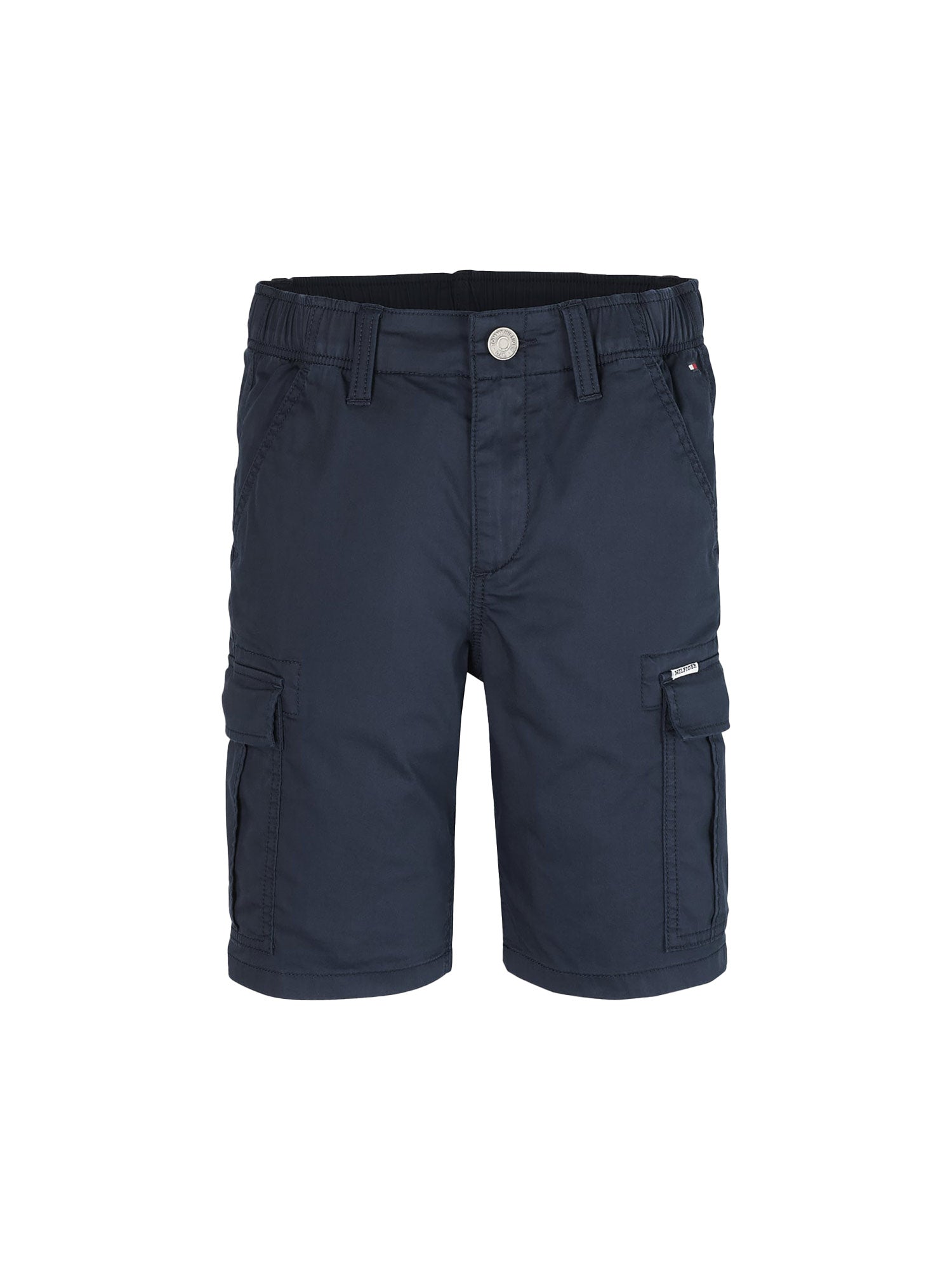 Bermuda Tommy Hilfiger, modello cargo da ragazzi con applicazione per bambino con vita elasticizzata.