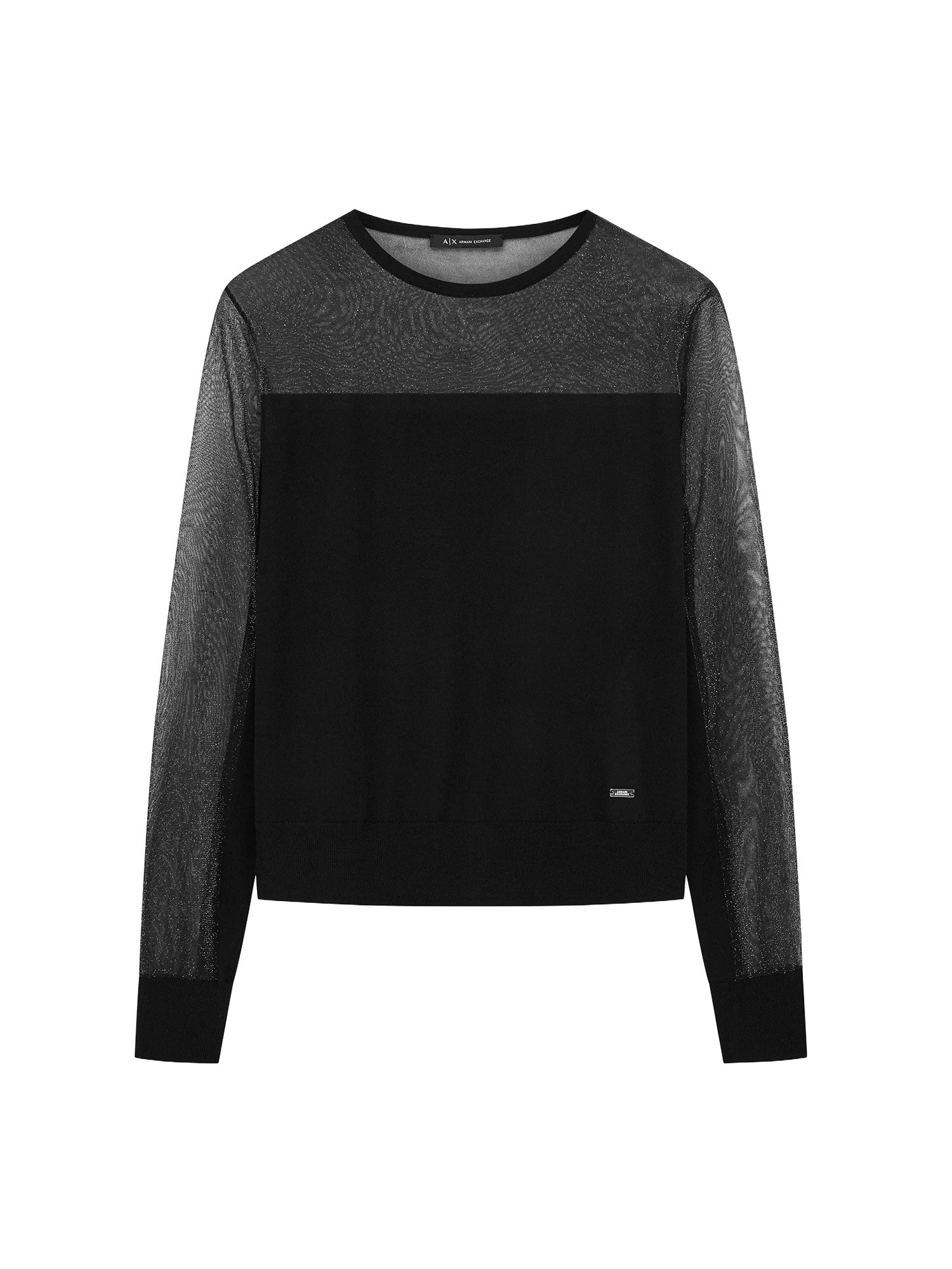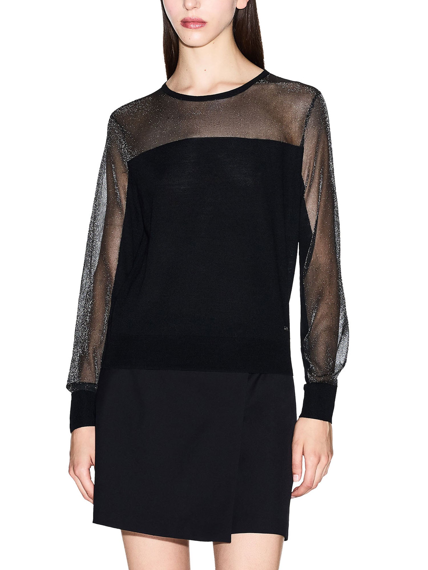 Blusa con trasparenza e glitter Armani Exchange donna nero