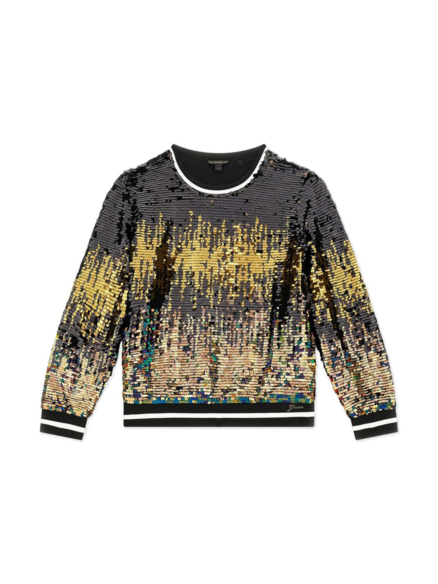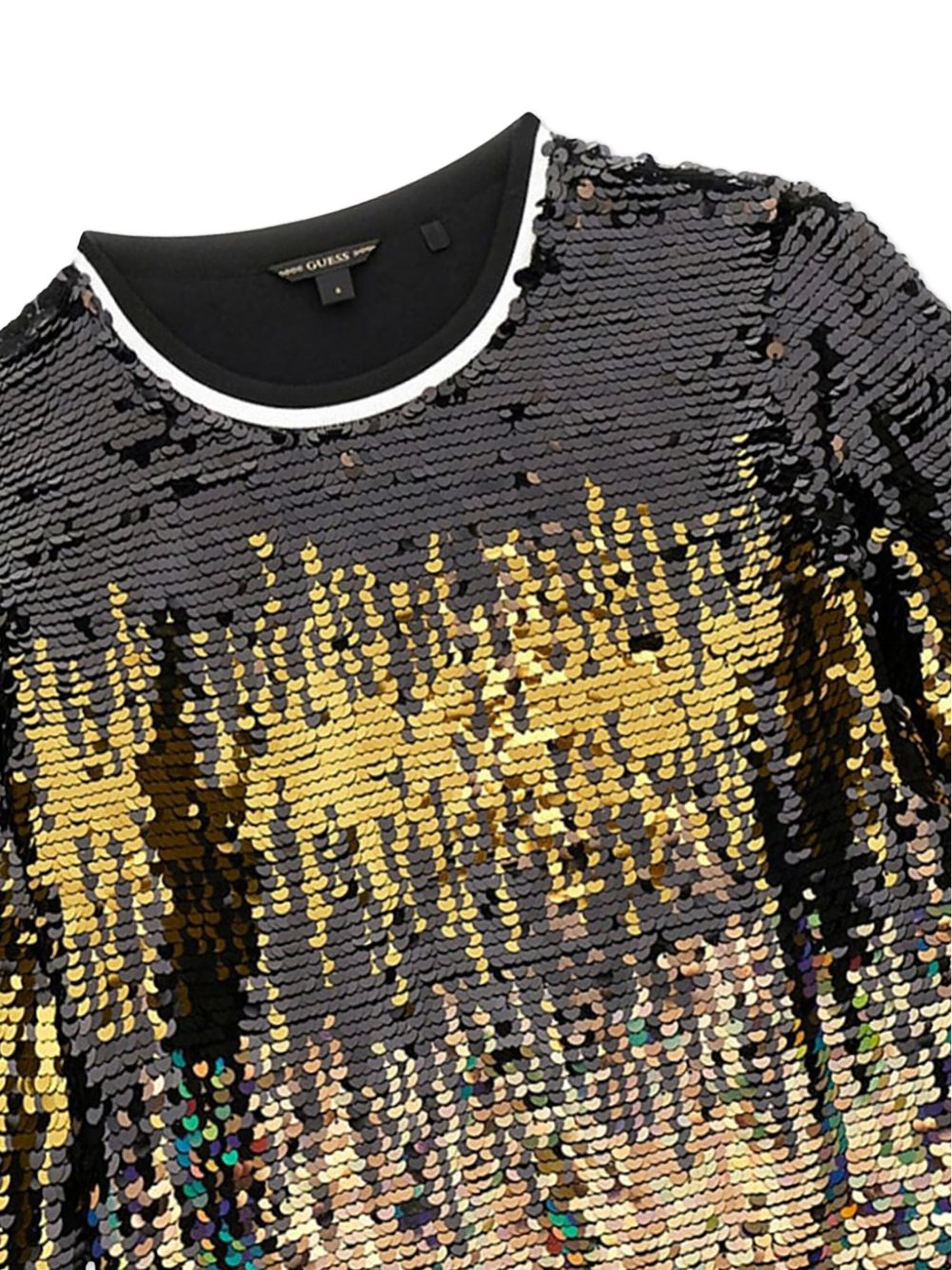 Blusa Guess sequin oro/nero con pailettes. Fai brillare la tua eleganza con questa blusa che riuscirà ad esaltare il tuo outift stupendo tutti quelli attorno a te.