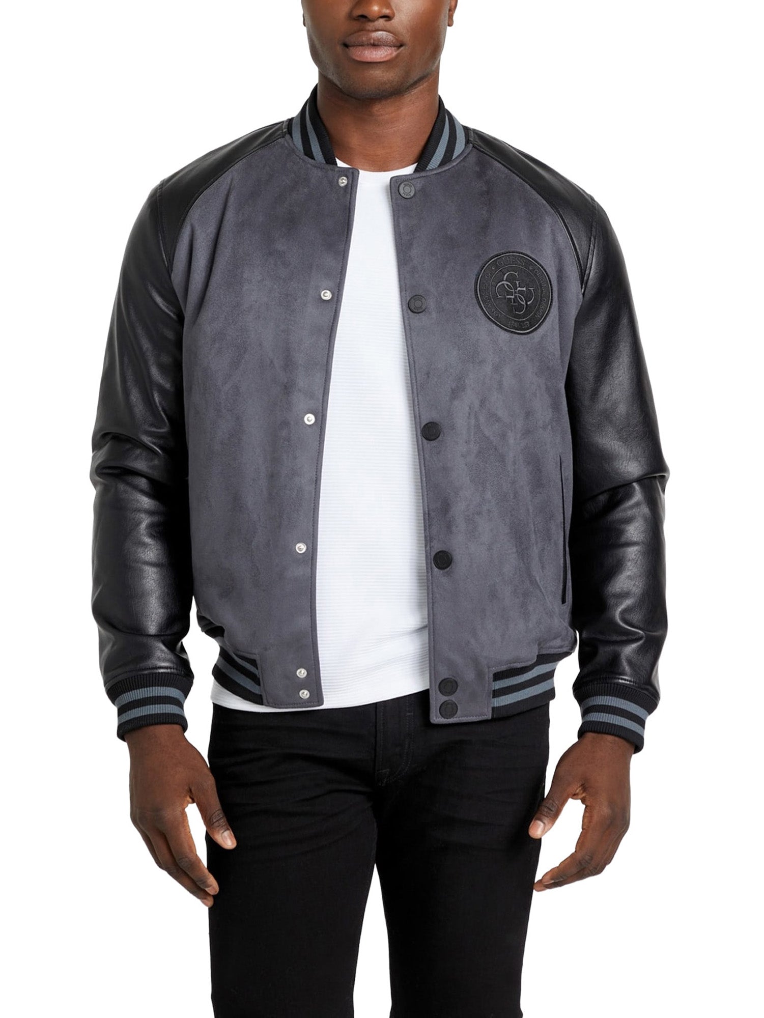 Giubbotto bomber con bottoni Guess uomo in bt. varsity grigio/nero