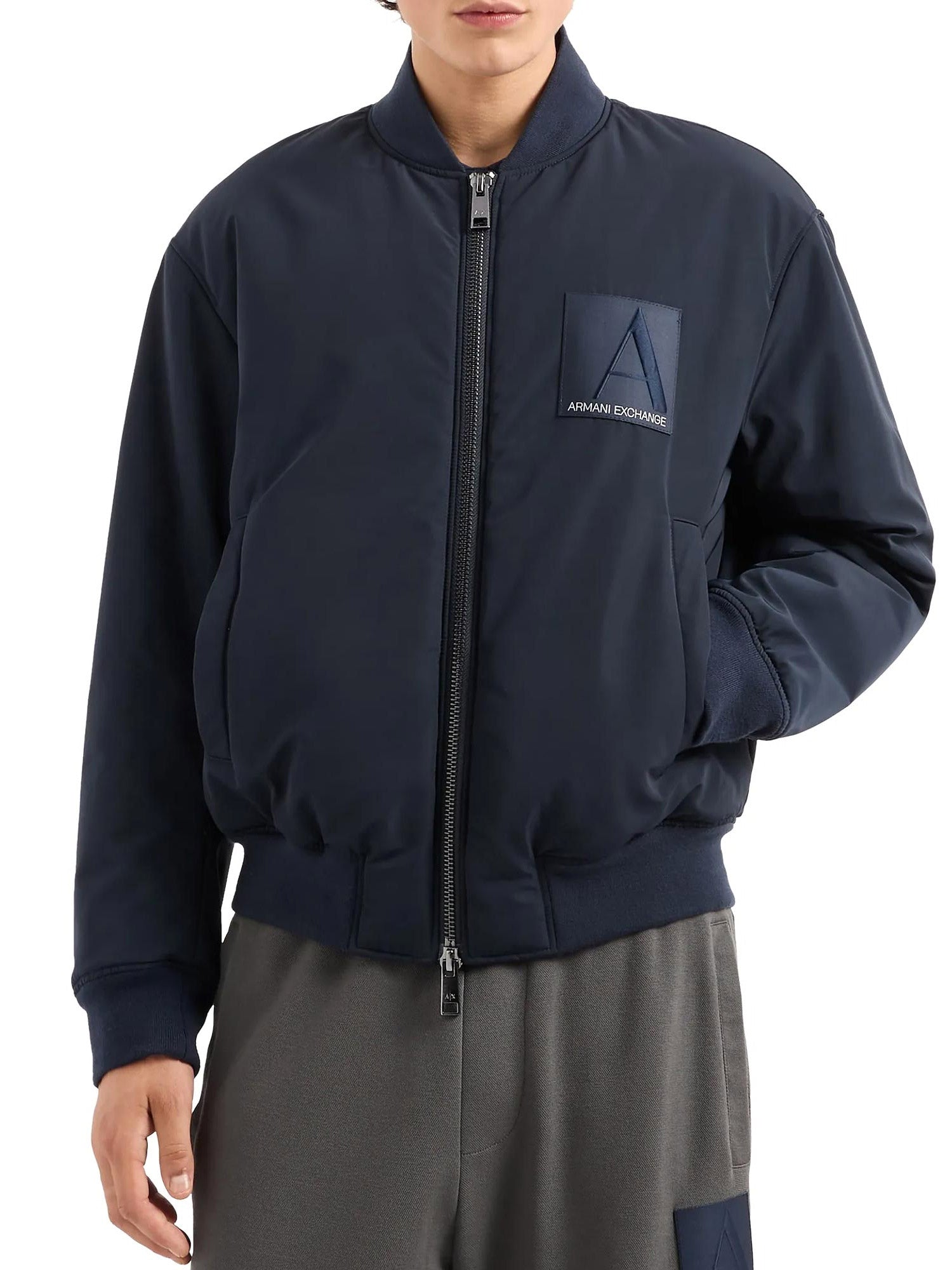 Bomber con zip patch logo blu