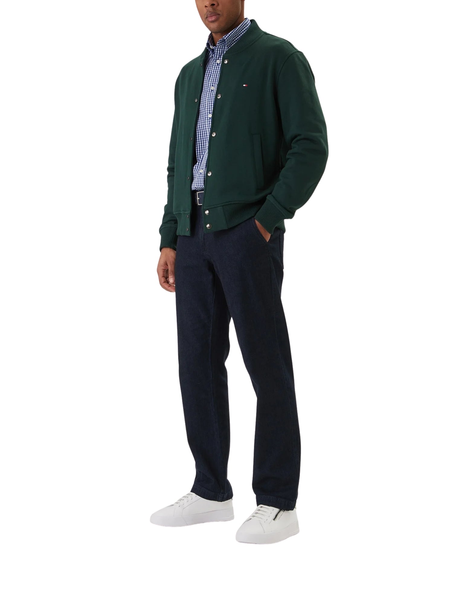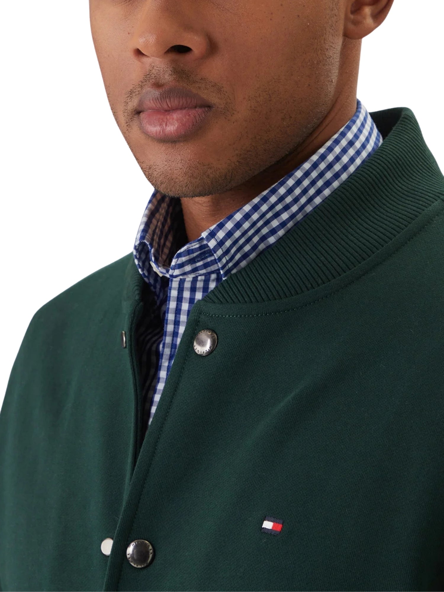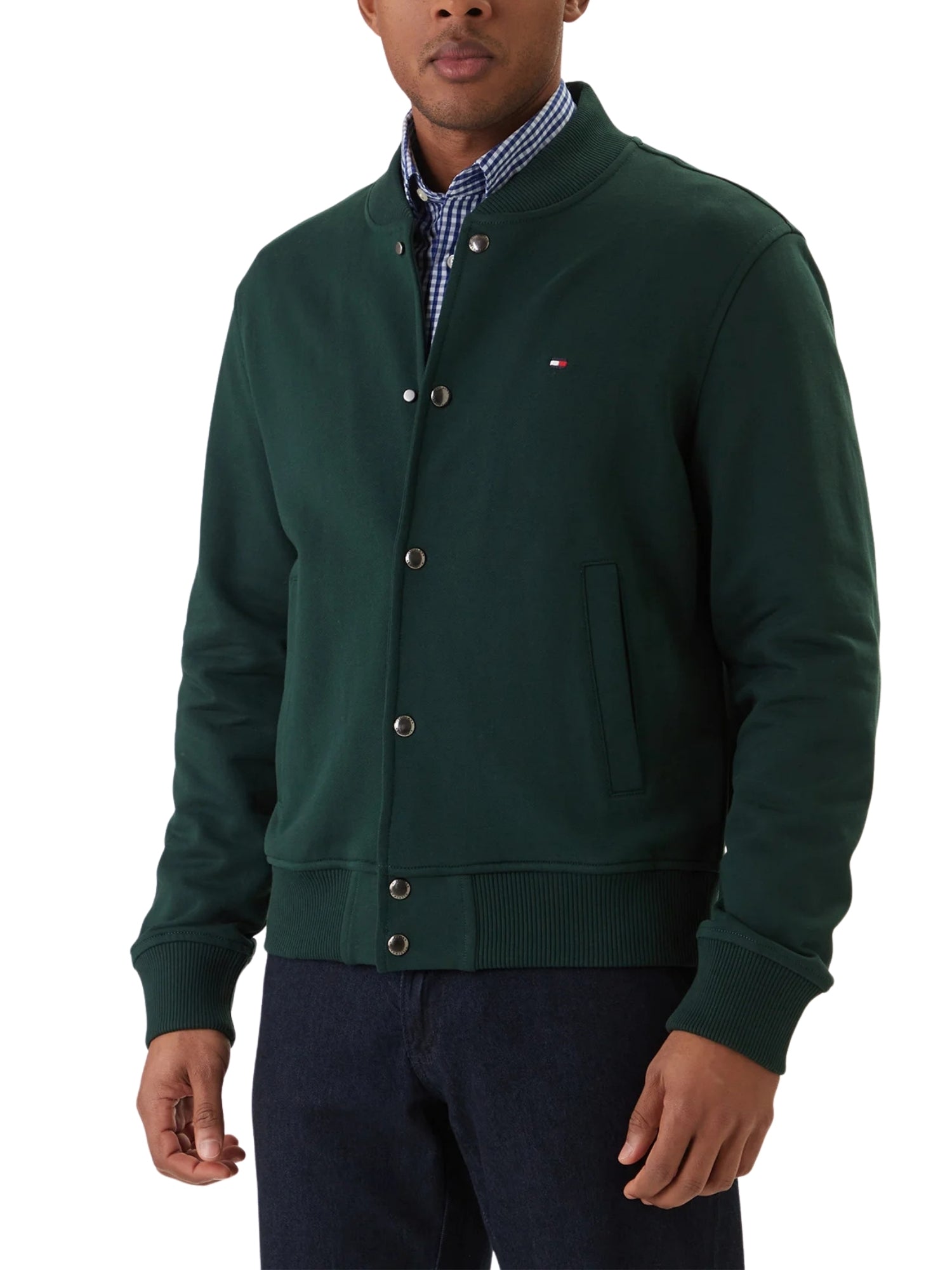 Bomber Tommy Hilfiger modello essential verde Un bomber in stile baseball, pensato per donare un tocco unico al tuo stile. - Collo stile baseball - Chiusura con bottoni automatici - Due tasche a filetto - Logo Tommy Hilfiger ricamato sul petto Composizione: 100% cotone, non felpato all'interno