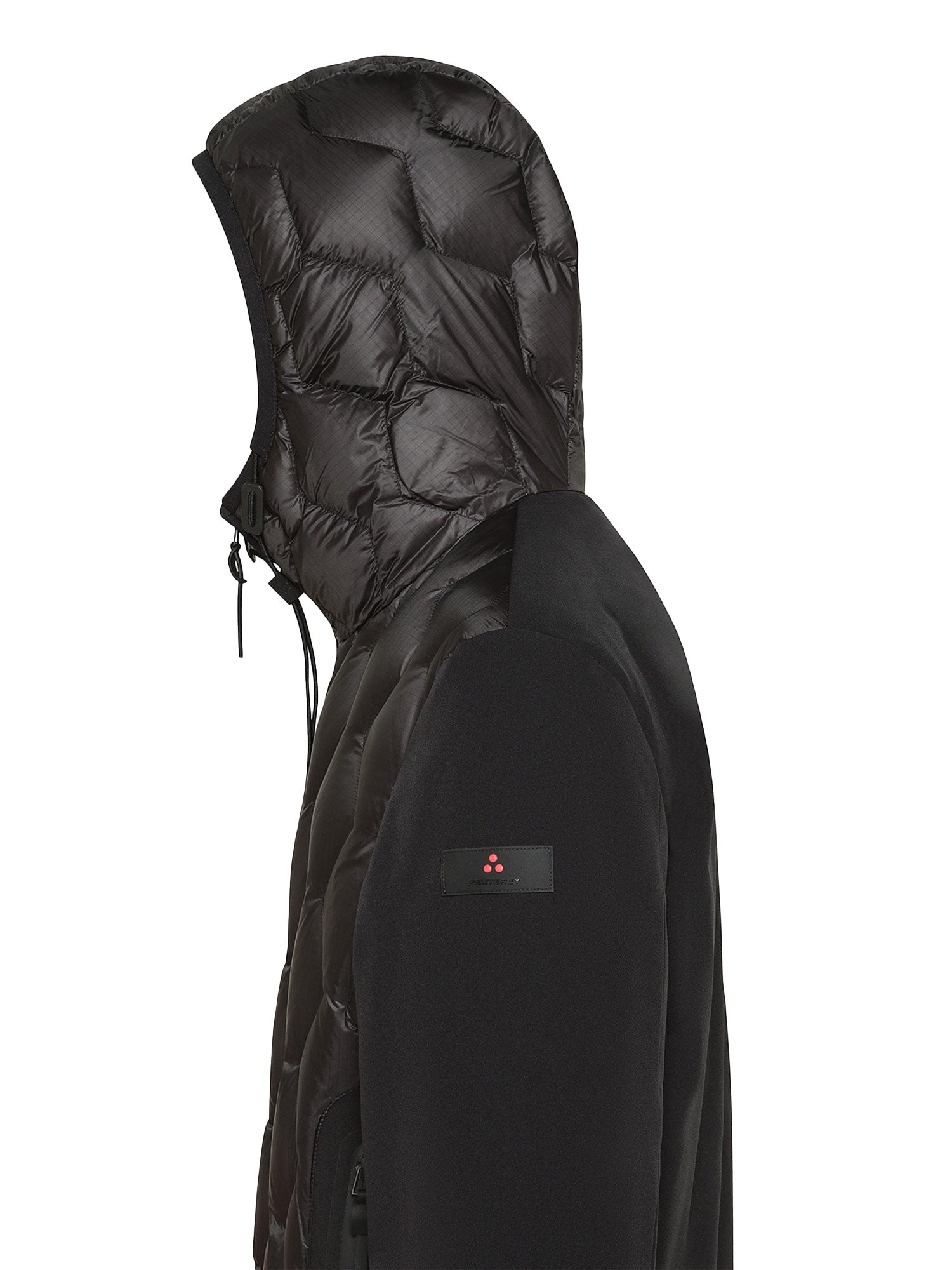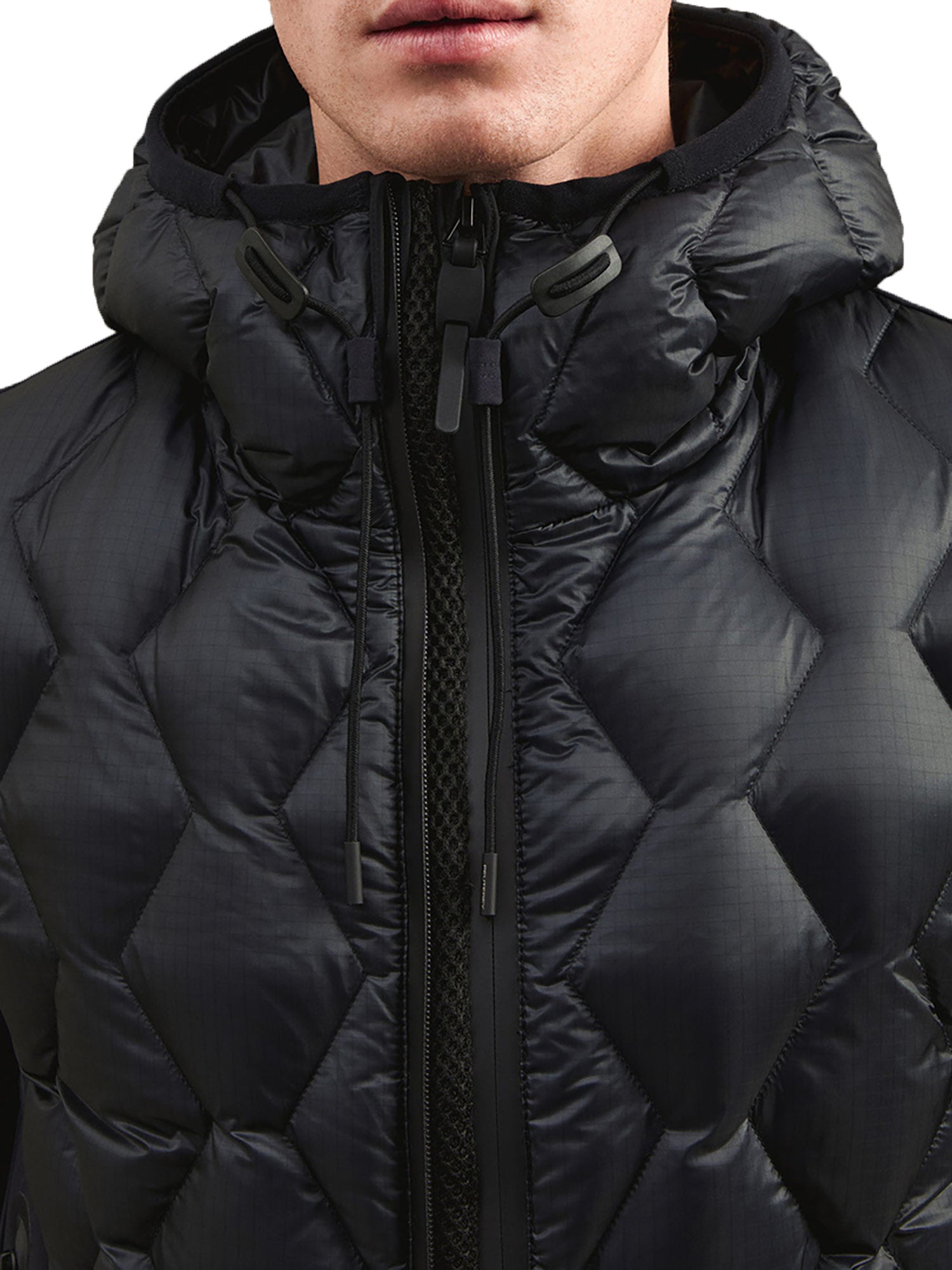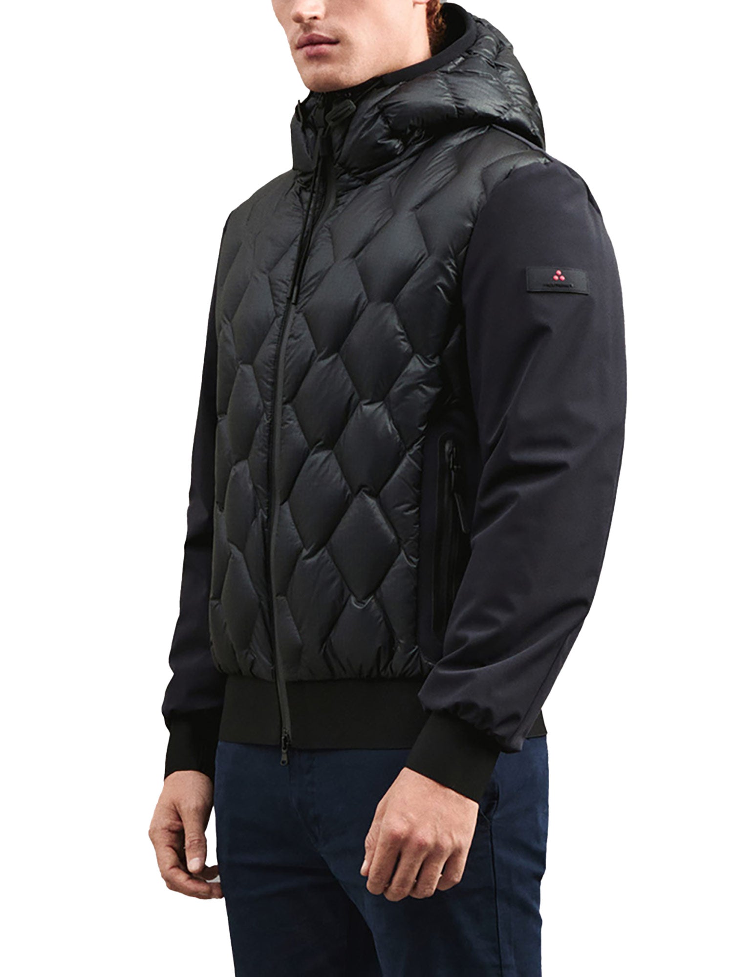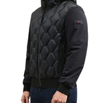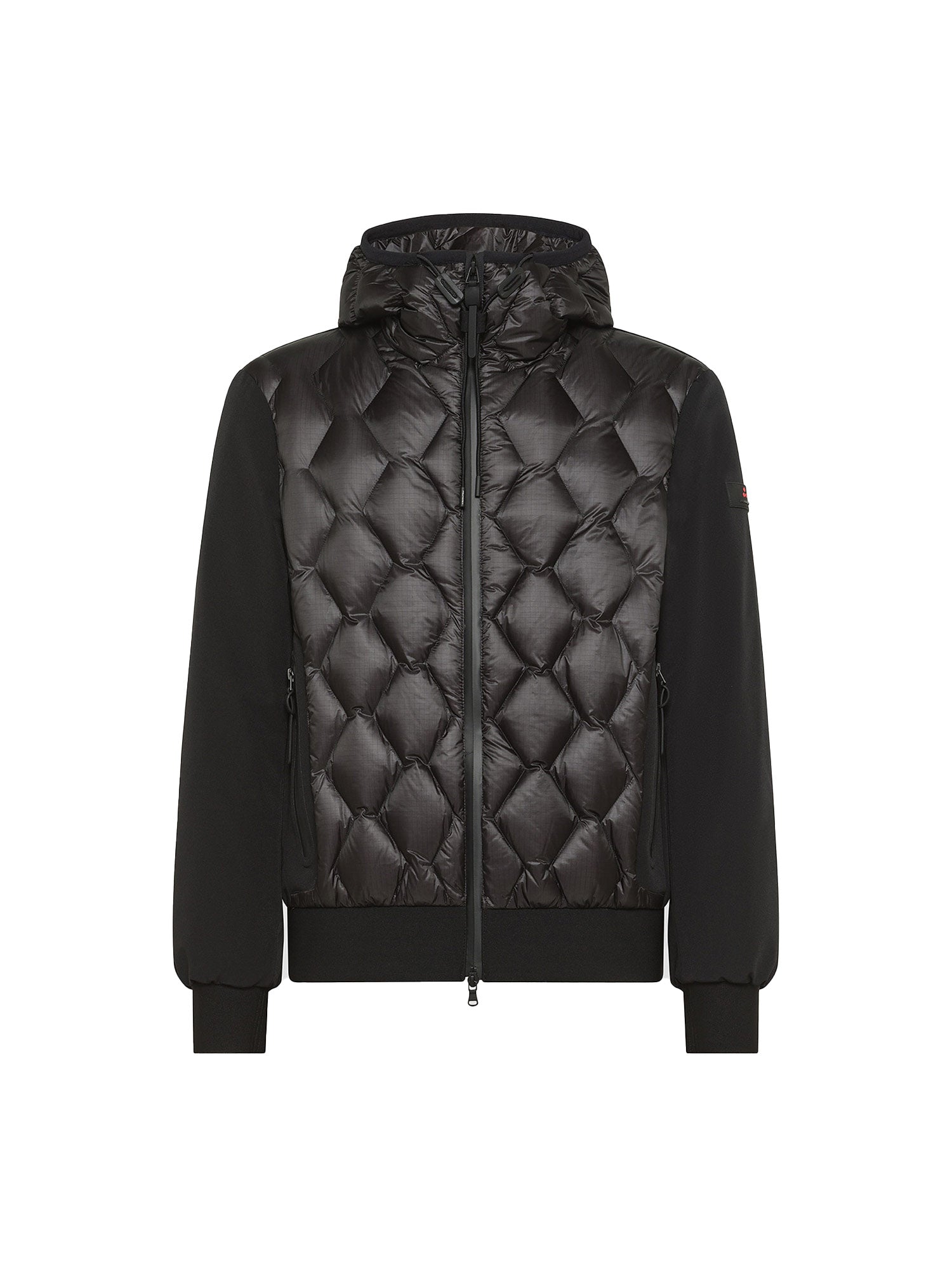 Bomber Peuterey, modello Koons, una scelta di stile audace e moderna per chi vuole distinguersi. Realizzato in nylon ripstop 7den, ultraleggero e lucido, e accoppiato a un tessuto di nylon stretch con jersey caldo e morbido, questo bomber unisce comfort e appeal tecnico. Il design unico presenta una trapuntatura geometrica a rombi sul davanti, mentre maniche e schiena restano lisce, con polsini e bordo in maglina elastica nera. I dettagli urban completano questo capo, tra cui la zip centrale con doppio cursore, il cappuccio regolabile fisso, l'imbottitura in piuma naturale certificata e le ampie tasche laterali con zip termosaldate. Downproof e idrorepellente, perfetto per affrontare la città con stile.