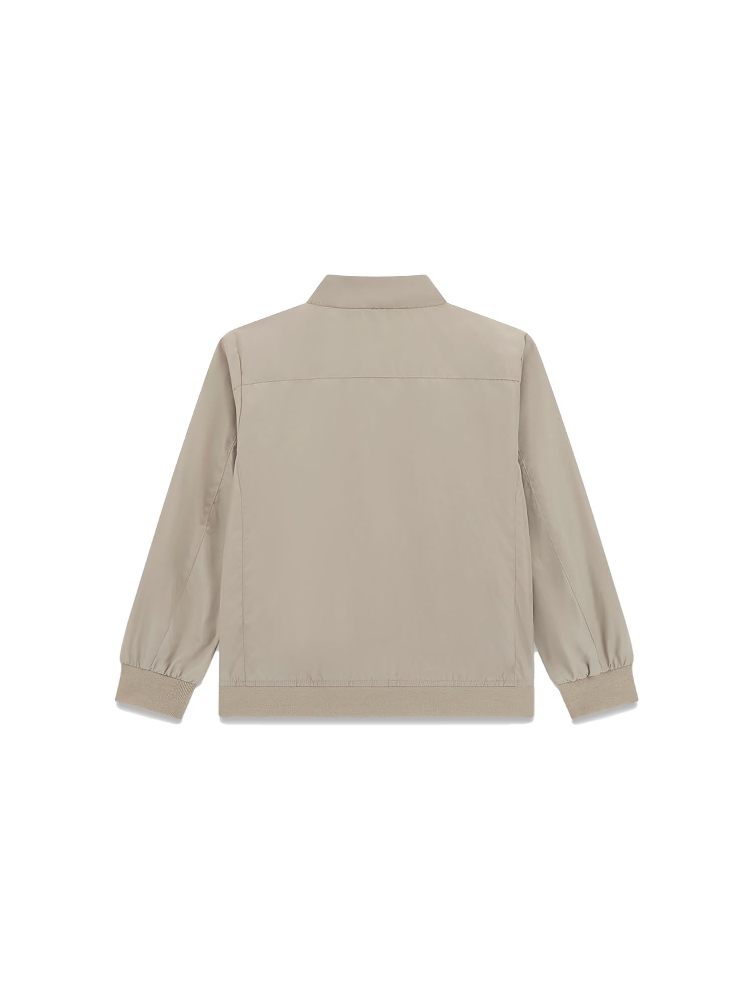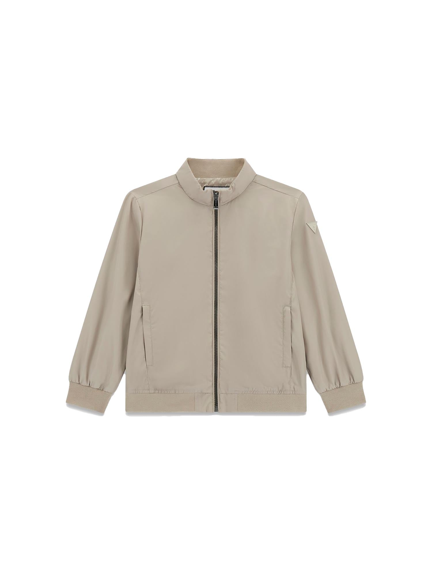 Giubbotto bambino leggero con zip Guess. Un capo pratico e versatile, ideale per la mezza stagione. Il design essenziale e sportivo lo rende perfetto per accompagnare i look quotidiani con comfort e stile.