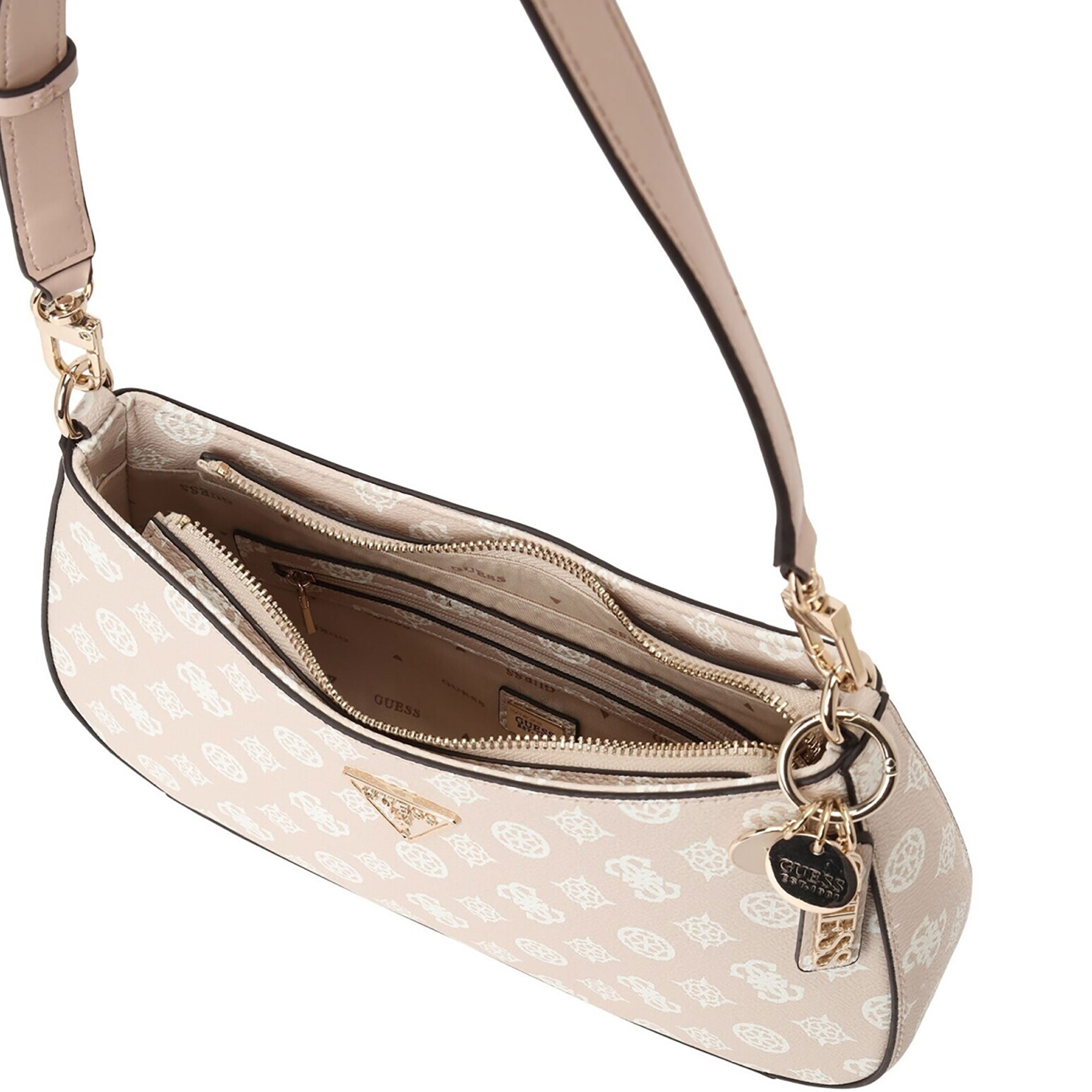 Borsa a spalla con zip Noelle logo all over sand