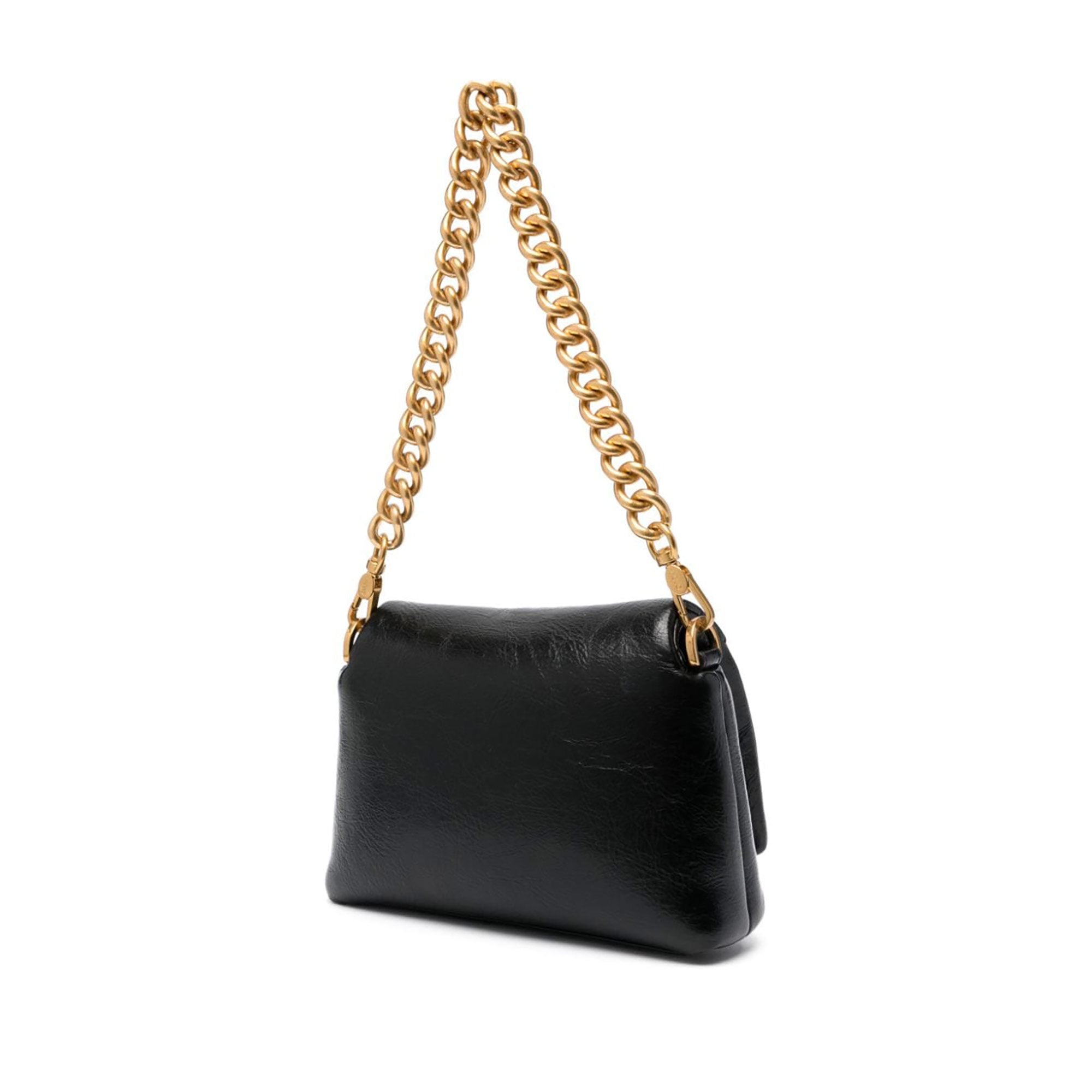Borsa a spalla Liu Jo, modello La Puffy , in ecopelle liscia con applicazione frontale logo e manico removibile.