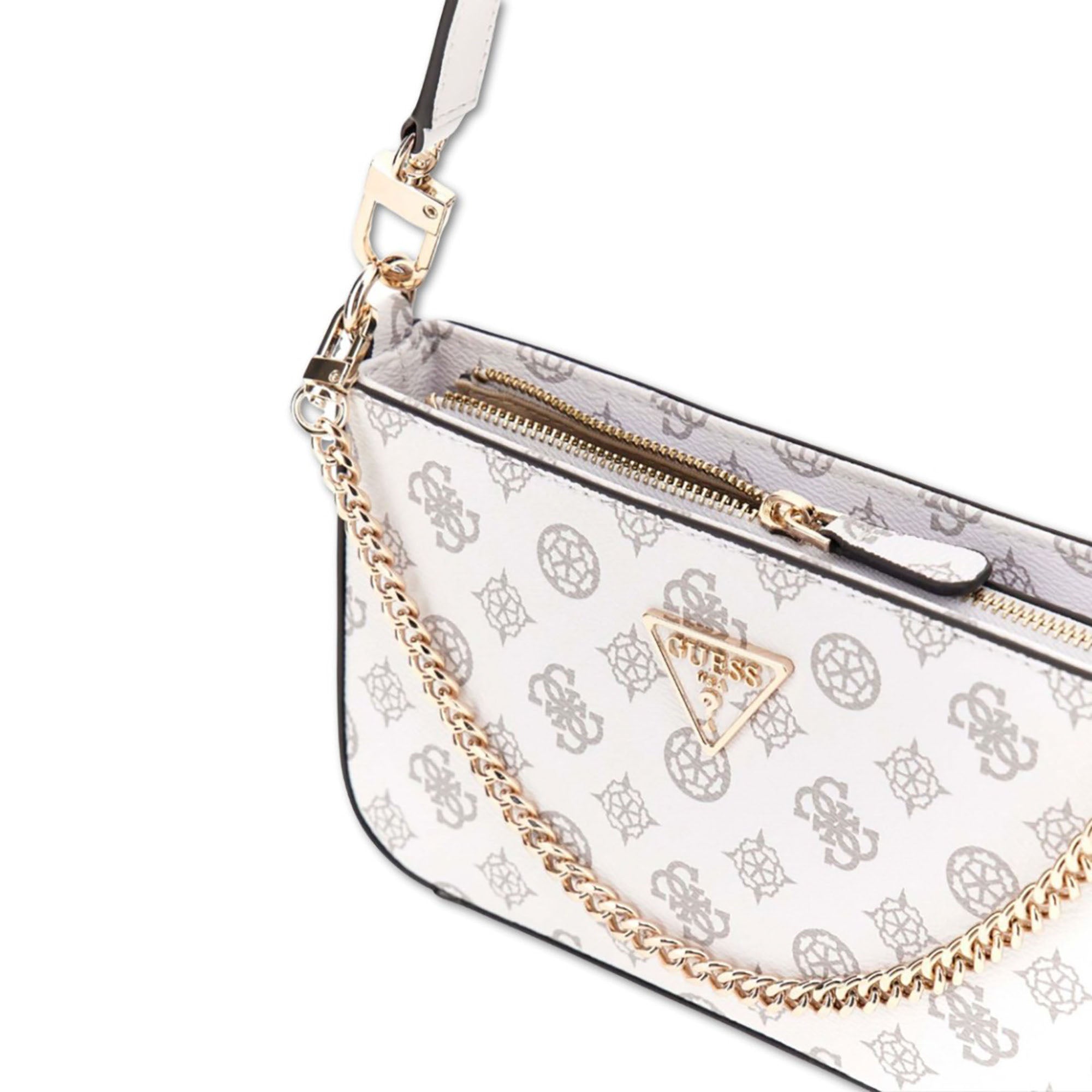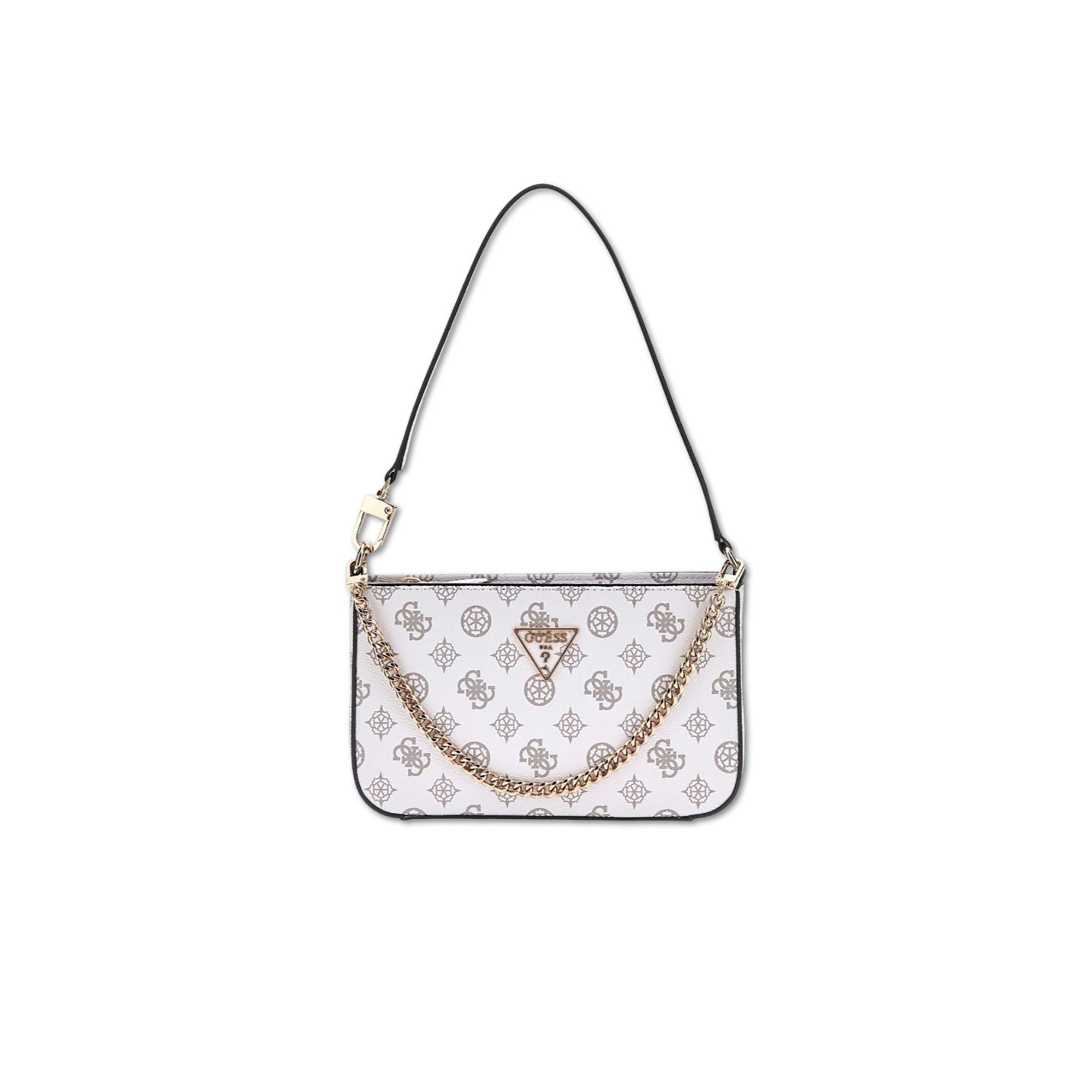 Borsa Guess, modello Noelle, con logo all over e tasca esterna con cerniera lampo. Perfetta per occasioni speciali e outfit casual- chic.