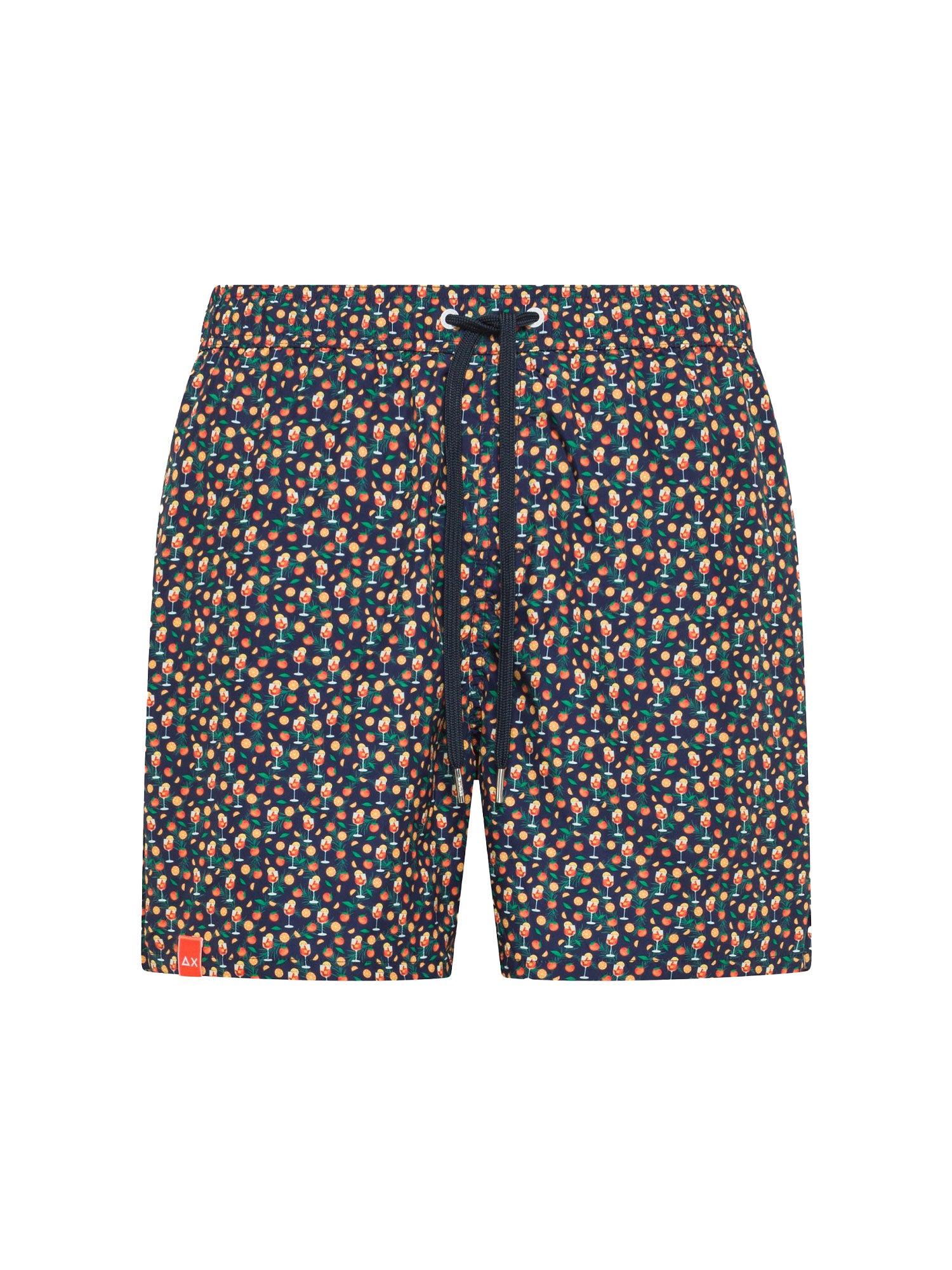 Costume da bagno dal design vivace con micro fantasia all over, ideale per un look originale e dinamico in spiaggia. Leggero e confortevole, perfetto per accompagnarti durante tutta la giornata.