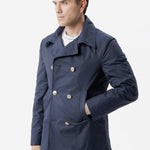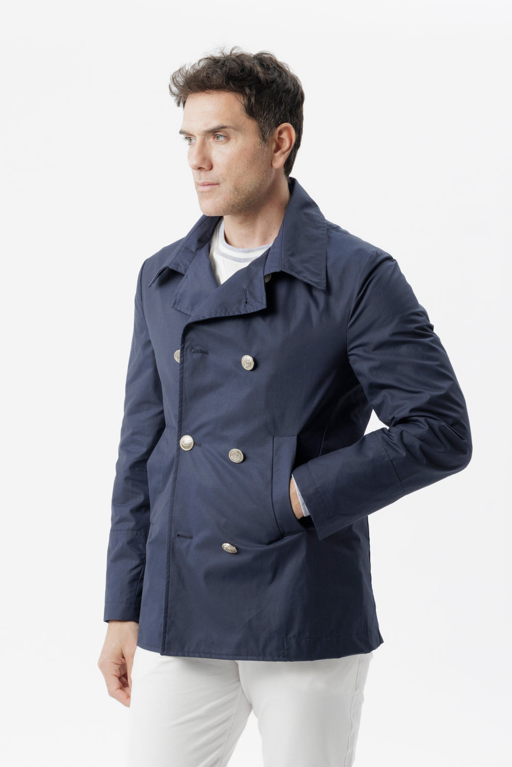 Caban doppiopetto realizzato in pregiato cotone tecnico, che garantisce leggerezza e comfort senza rinunciare alla protezione dalle prime brezze primaverili. La sua silhouette elegante e slanciata è esaltata dalla doppia fila di bottoni in galvanica, che aggiungono un tocco di personalità. Completano il capo i dettagli sartoriali evidenziati dal sottocollo trapuntato e dalle finiture interne.