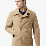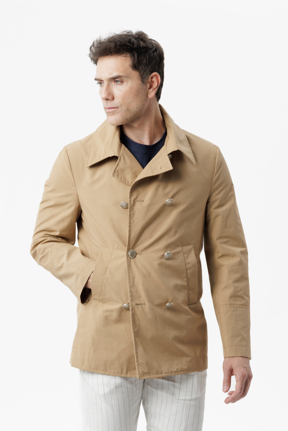 Caban doppiopetto realizzato in pregiato cotone tecnico, che garantisce leggerezza e comfort senza rinunciare alla protezione dalle prime brezze primaverili. La sua silhouette elegante e slanciata è esaltata dalla doppia fila di bottoni in galvanica, che aggiungono un tocco di personalità. Completano il capo i dettagli sartoriali evidenziati dal sottocollo trapuntato e dalle finiture interne.