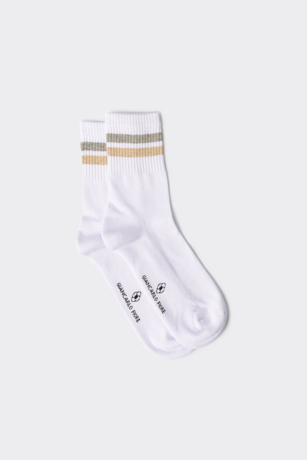 Questa calza unisce comfort, resistenza ed elasticità in un design essenziale. La lavorazione a coste assicura una vestibilità aderente e piacevole, mentre i profili a contrasto sul bordo aggiungono un tocco sportivo e dinamico.