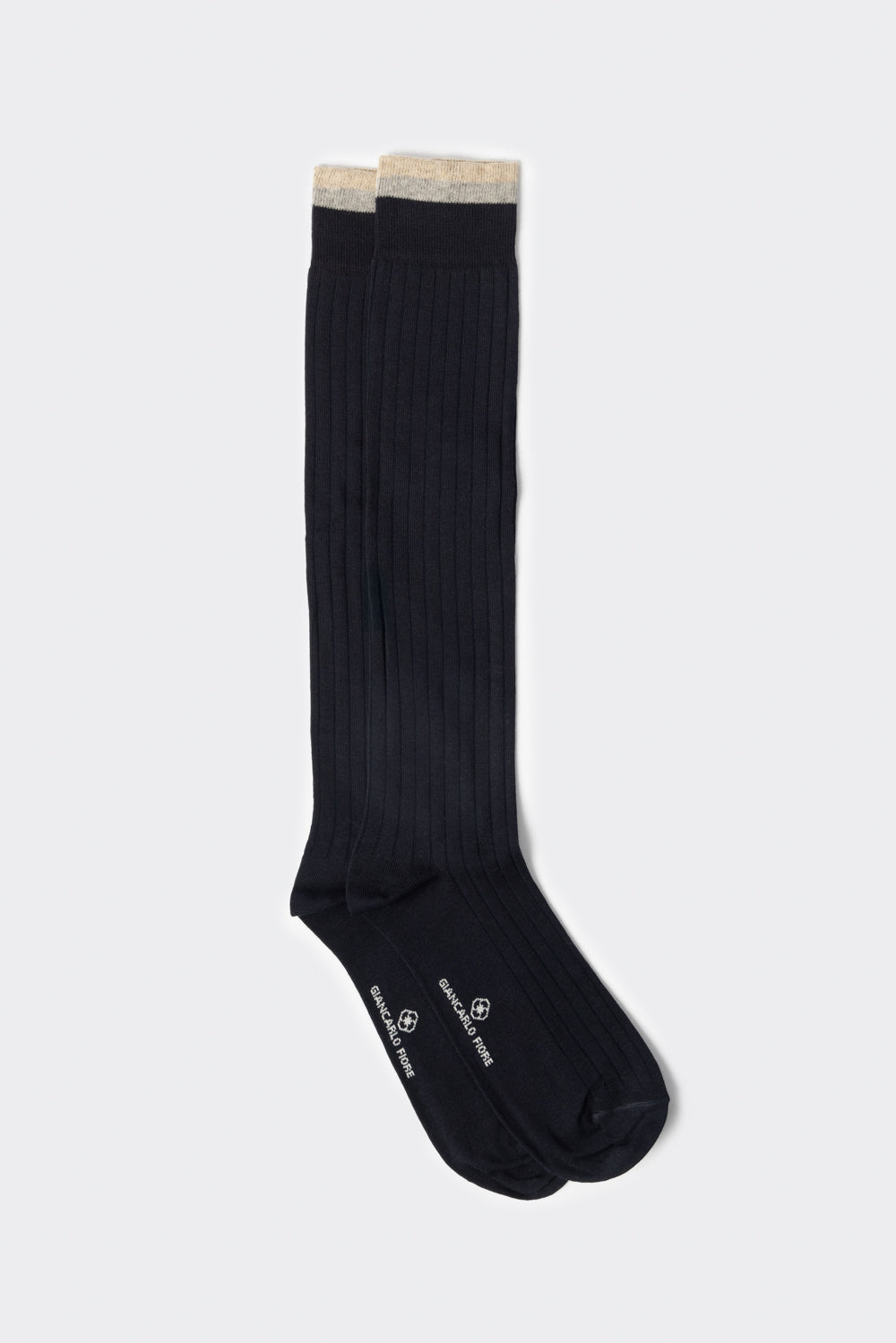 Questa calza lunga unisce comfort, resistenza ed elasticità in un design essenziale. La lavorazione a coste assicura una vestibilità aderente e piacevole, mentre i profili a contrasto sul bordo aggiungono un tocco sportivo e dinamico. Un accessorio trasversale, perfetto per completare look casual con uno stile curato nei dettagli.