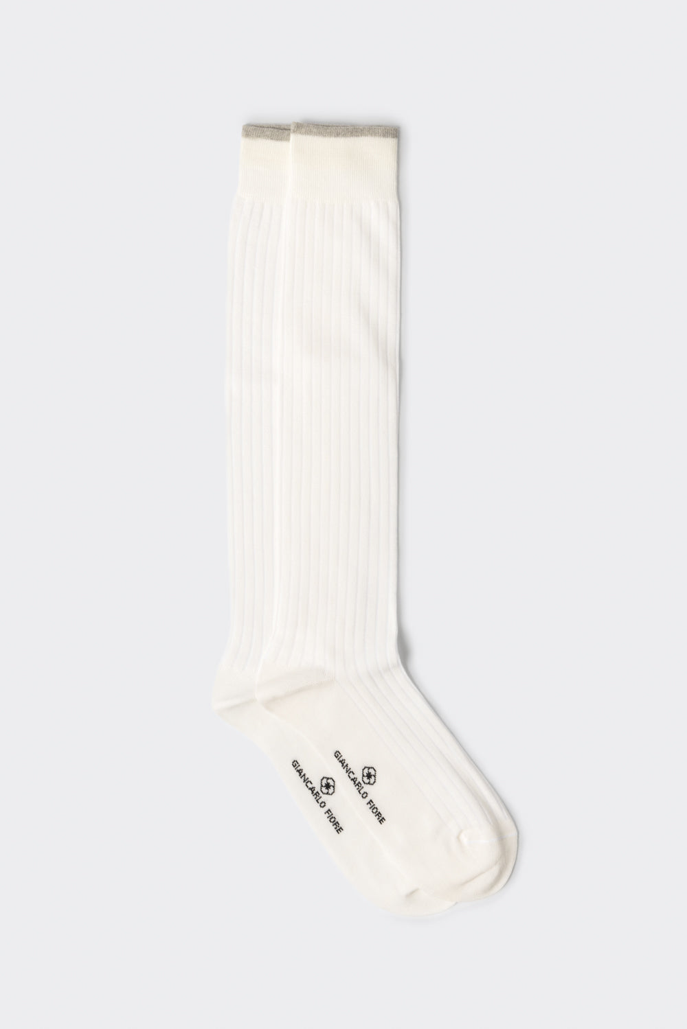 Calza lunga mélange a coste con profilo a contrasto bianco