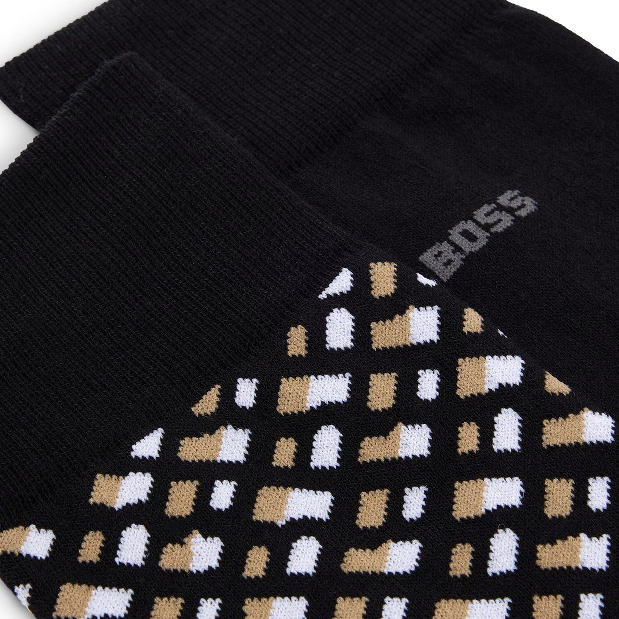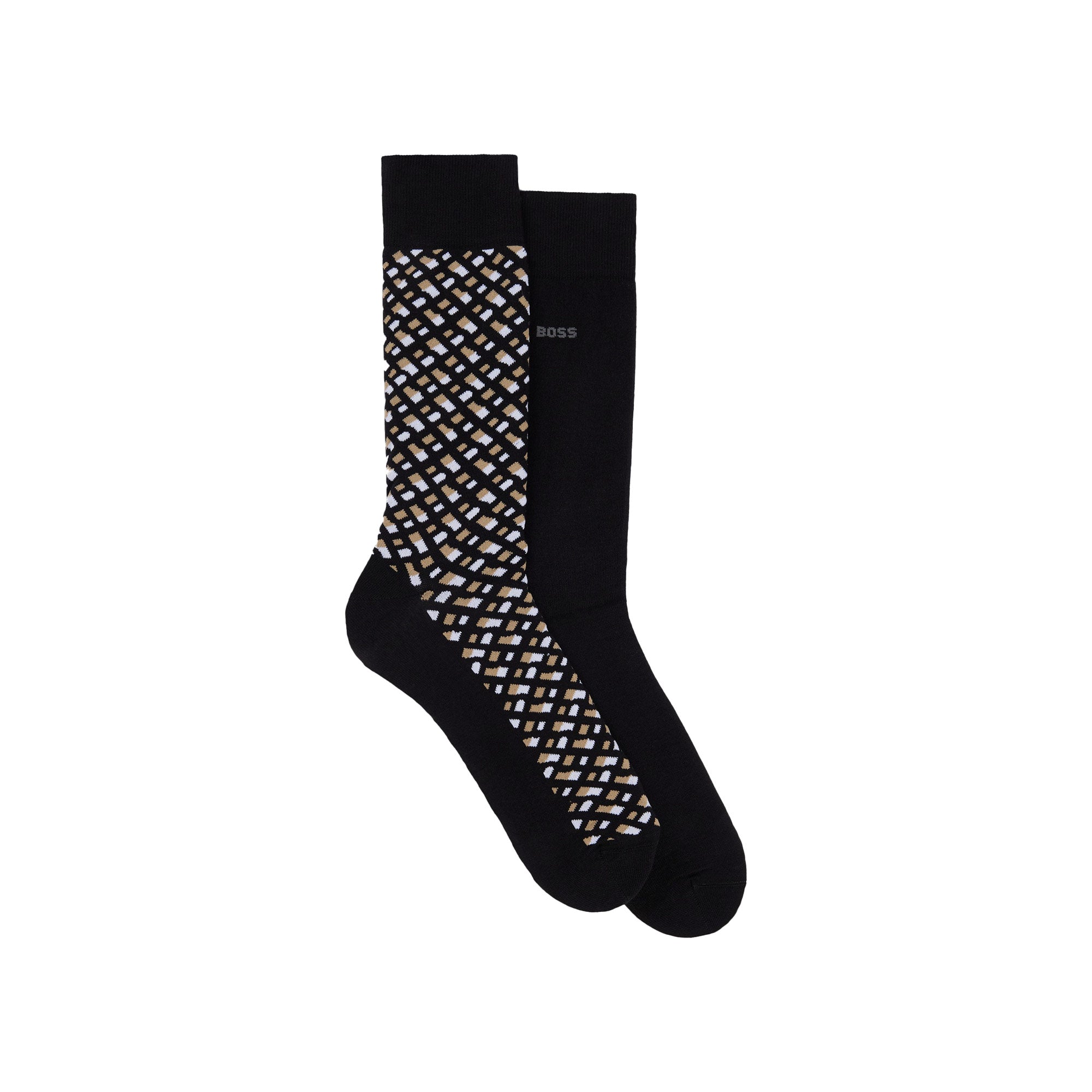 Set 2 pezzi calzini BOSS per uomo con fantasia monogramma, lunghezza regolare e in misto cotone.