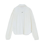 - Colletto a punta e maniche lunghe con arricciatura sui polsi