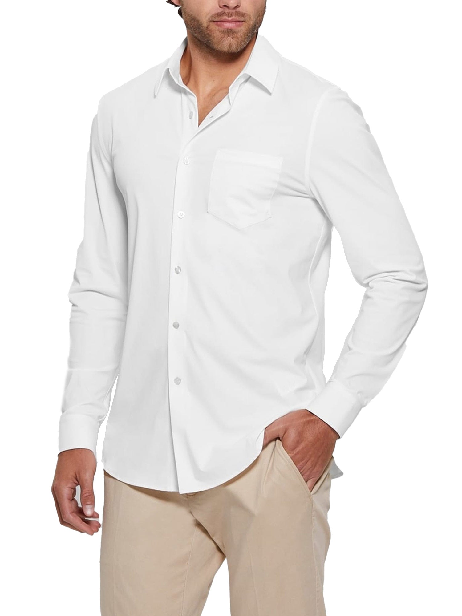 Camicia Guess, modello classico da uomo con abbottonatura frontale e taschino laterale. Perfetta da indossare per un look casual o formale.