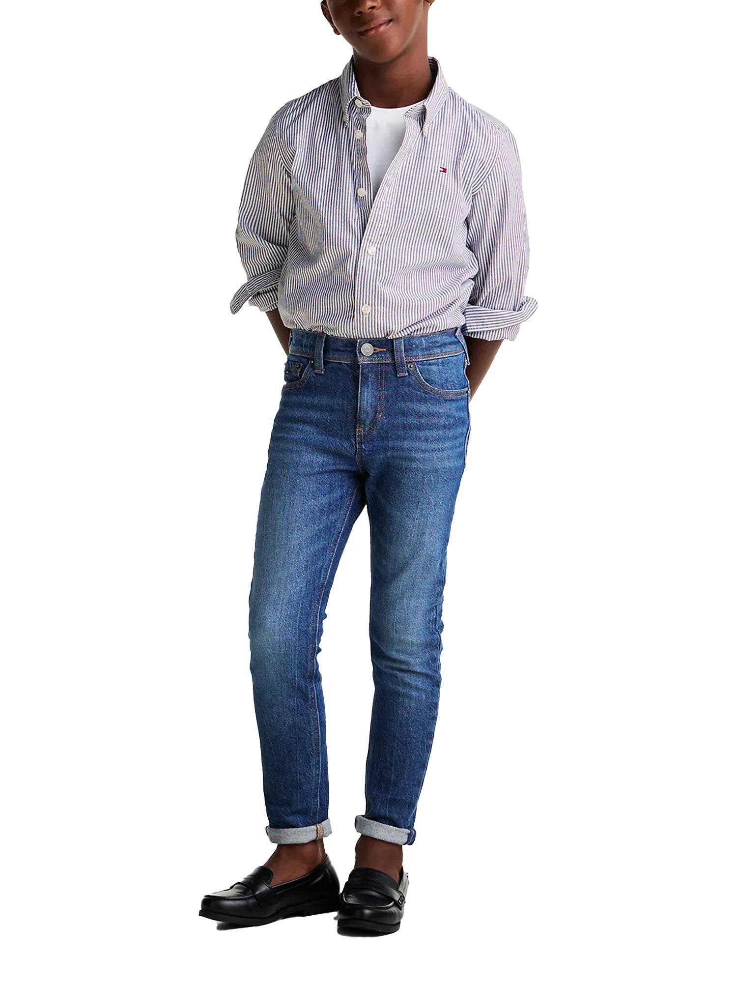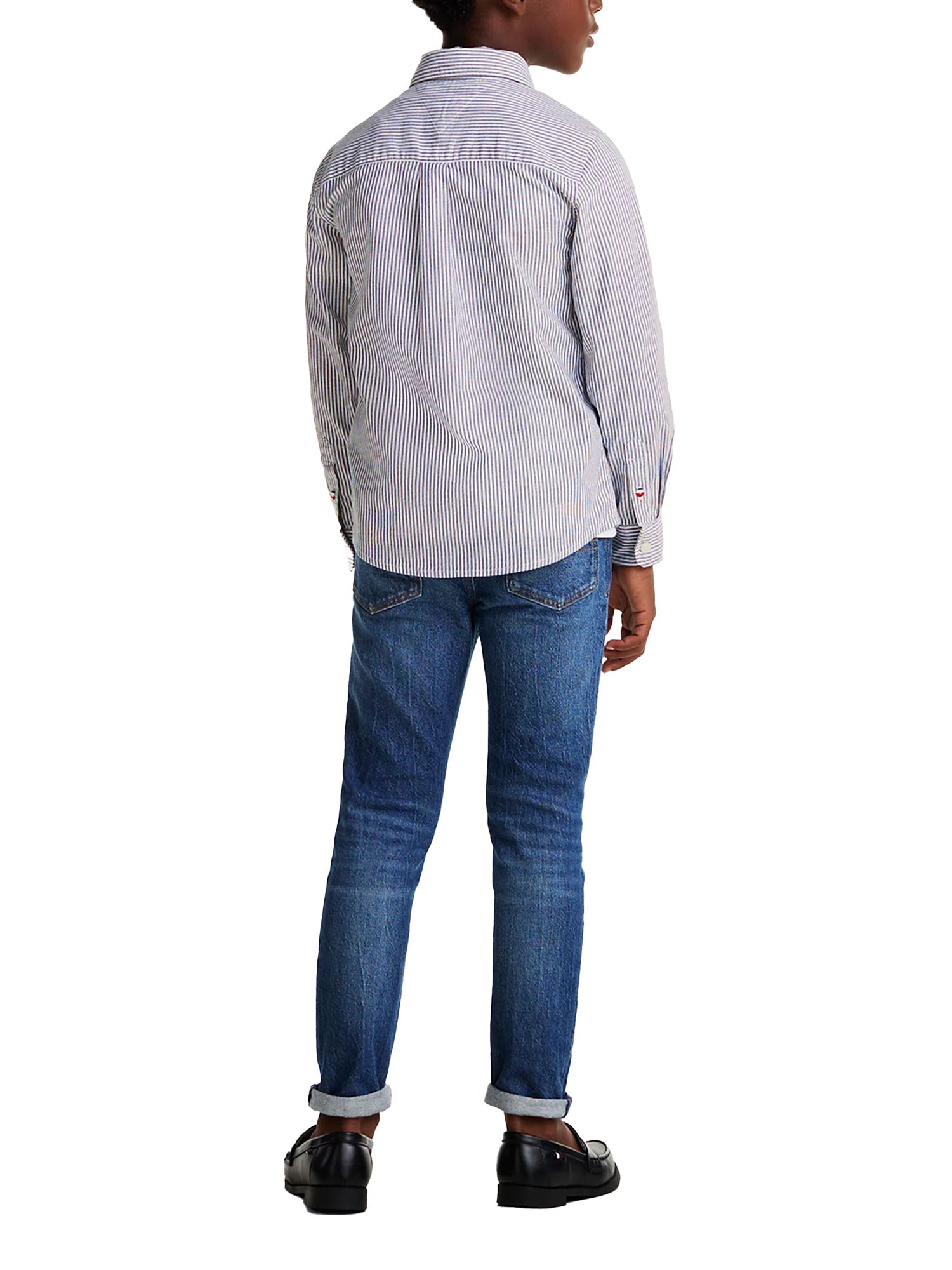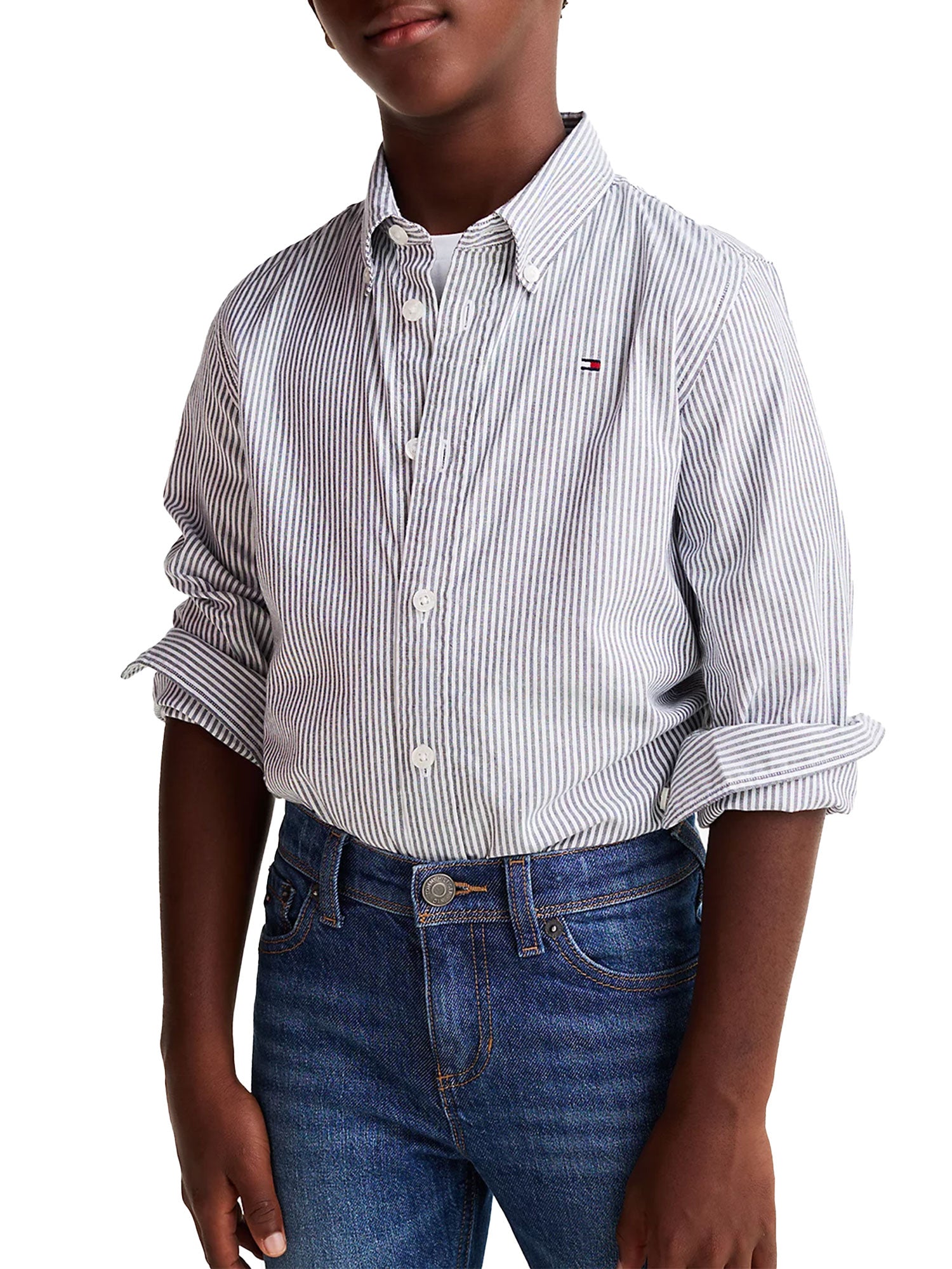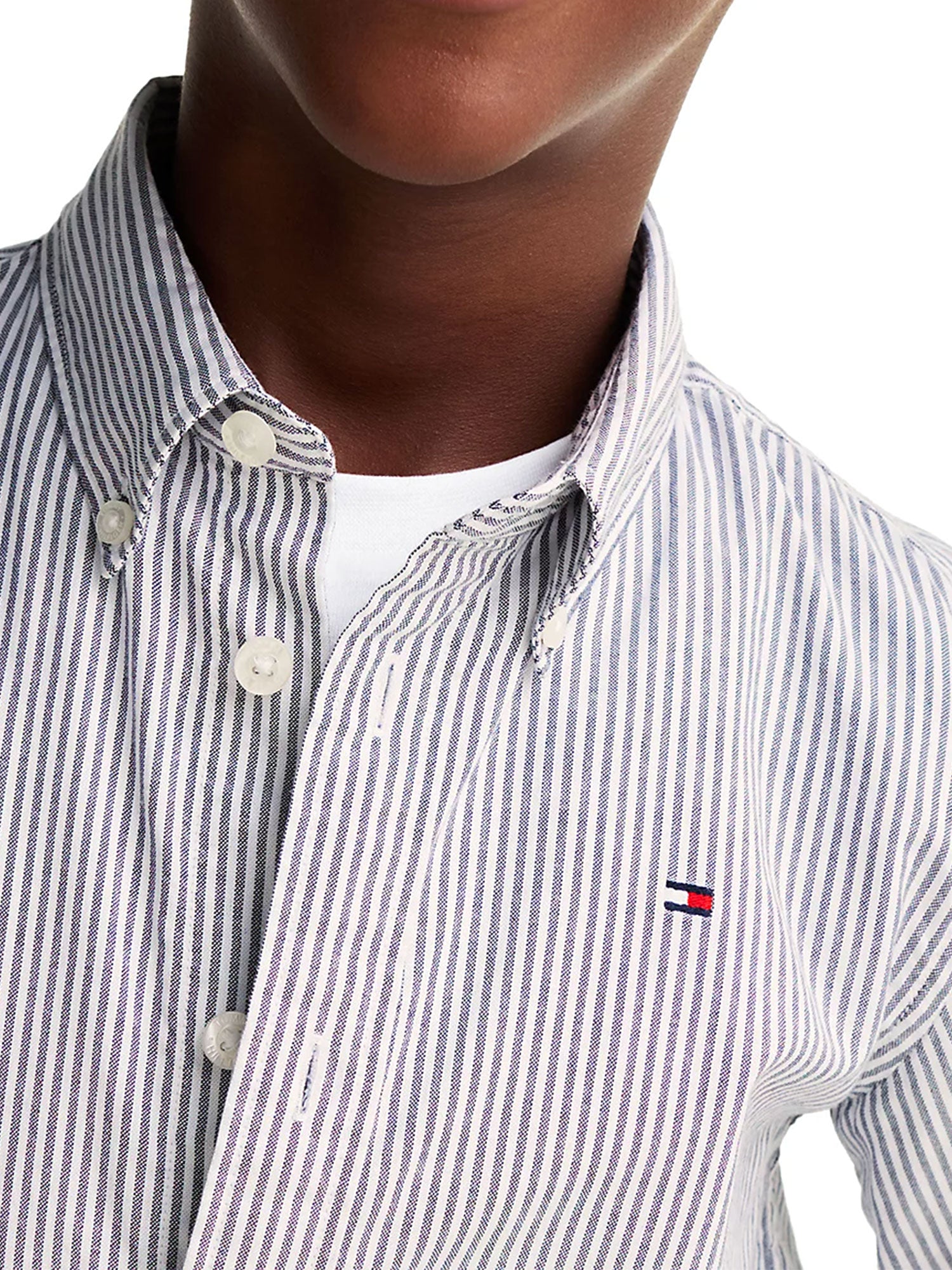 Camicia con motivo a righe ithaca per bambino della linea Tommy Hilfiger. Realizzata in cotone stretch con tecnologia Flex, per offrire il massimo comfort.