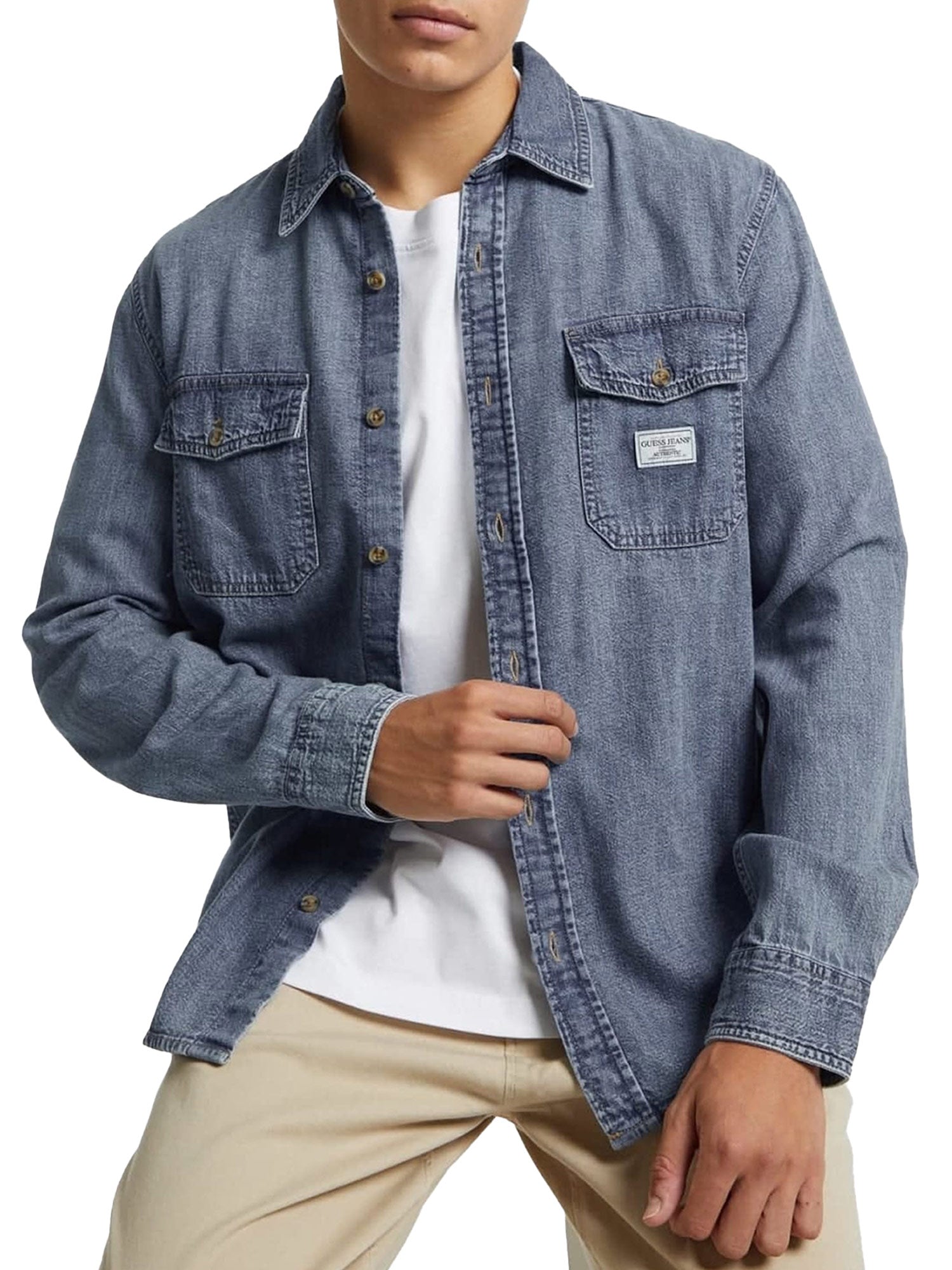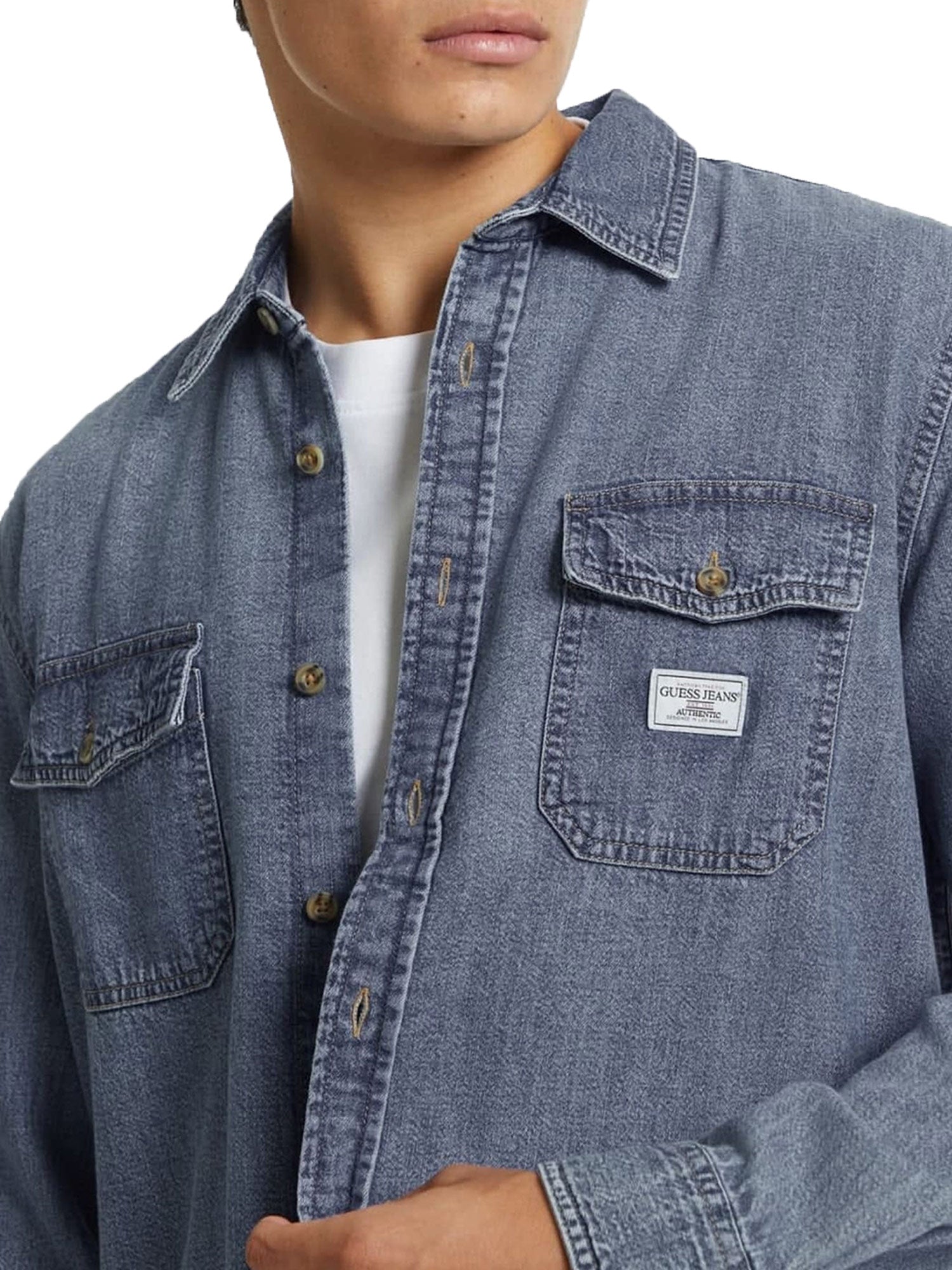 Camicia Guess di jeans a manica lunga. Perfetta per un outfit casual o un look deciso. Articolo realizzato nel nostro iconico denim GUESS JEANS.